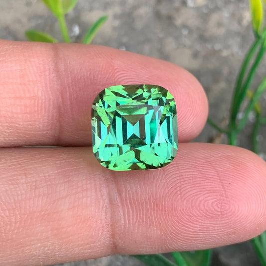 15.50 Carats Exquisite Bluish Green Tourmaline Gemstone with Cushion shape from Afghanistan