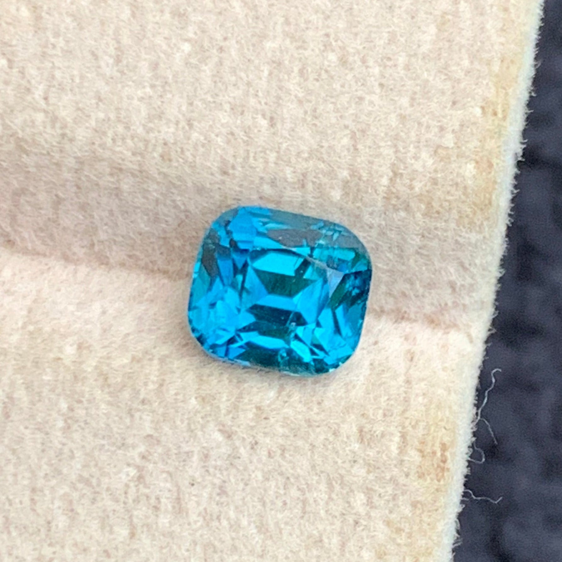 This 1.25 carat vivid blue tourmaline gemstone features a cushion cut that enhances its rich, captivating color. Known for its durability and distinct hue, this gem is ideal for sophisticated jewelry designs, offering both elegance and resilience. Its precise cut maximizes light reflection, delivering exceptional brilliance and depth to any setting. Perfect for collectors or custom pieces, this tourmaline combines timeless beauty with expert craftsmanship.