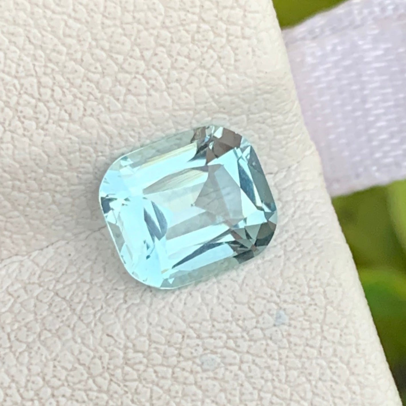 This 1.25-carats sea blue aquamarine gemstone showcases a delicate sky blue hue with a classic cushion shape. Its refined cut enhances brilliance and depth, making it perfect for elegant jewelry pieces that highlight both charm and clarity. Sourced for quality, this stone embodies timeless sophistication.