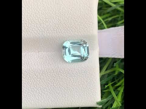 This delicate 1.25-carat aquamarine glows with a soft sea-blue to sky-blue hue, evoking the calm beauty of ocean waters. Cut in a cushion shape, it offers a timeless elegance with smooth edges and brilliant facets that enhance its natural sparkle. Its petite size makes it perfect for refined, minimalist jewelry pieces.