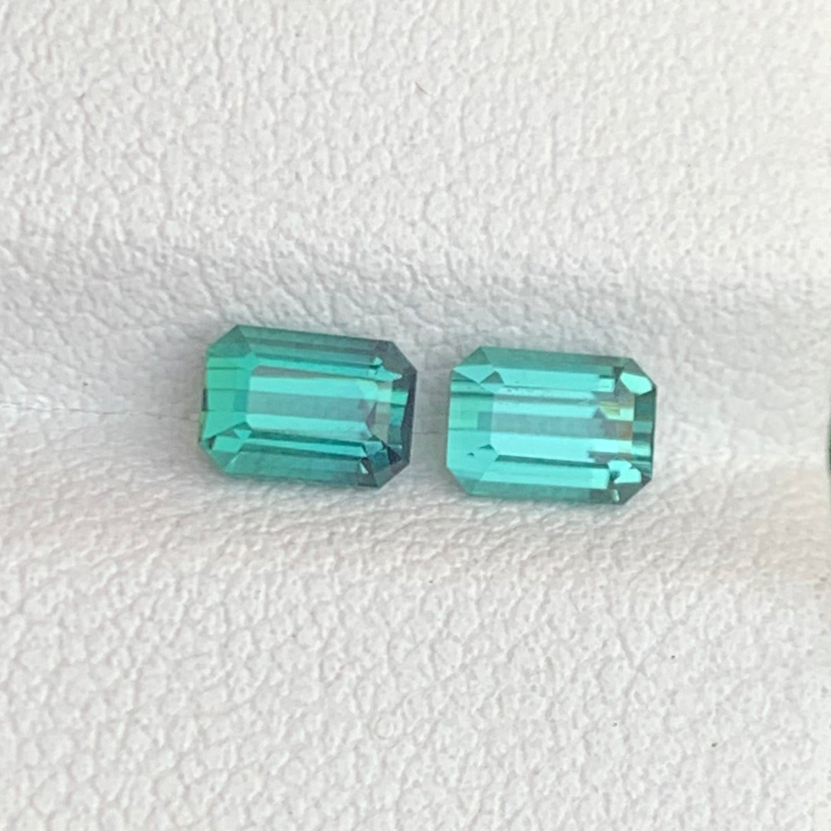 1.28 Carats Lagoon Tourmaline pair features a refreshing oceanic blend of blue and green hues, beautifully matched for symmetry and brilliance. Expertly cut in a classic Emerald shape, these gemstones display clean lines and exceptional clarity, enhancing their natural glow.