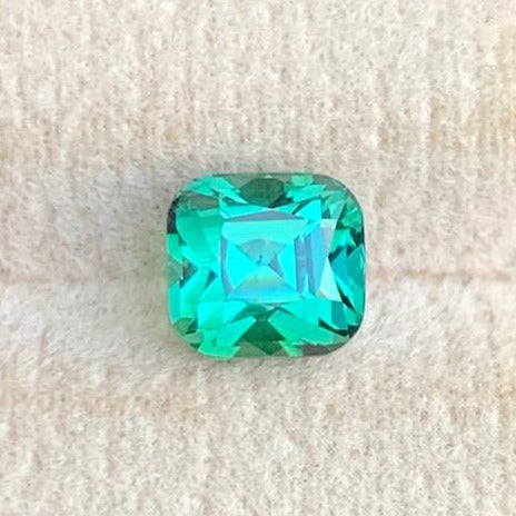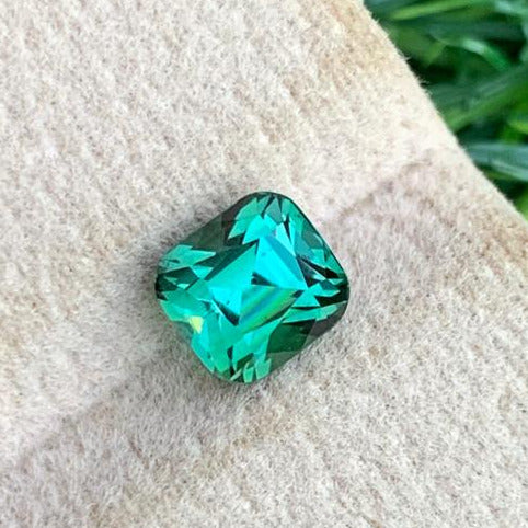 1.34 Carats Bluish Green Tourmaline Gemstone with Cushion shape from Afghanistan