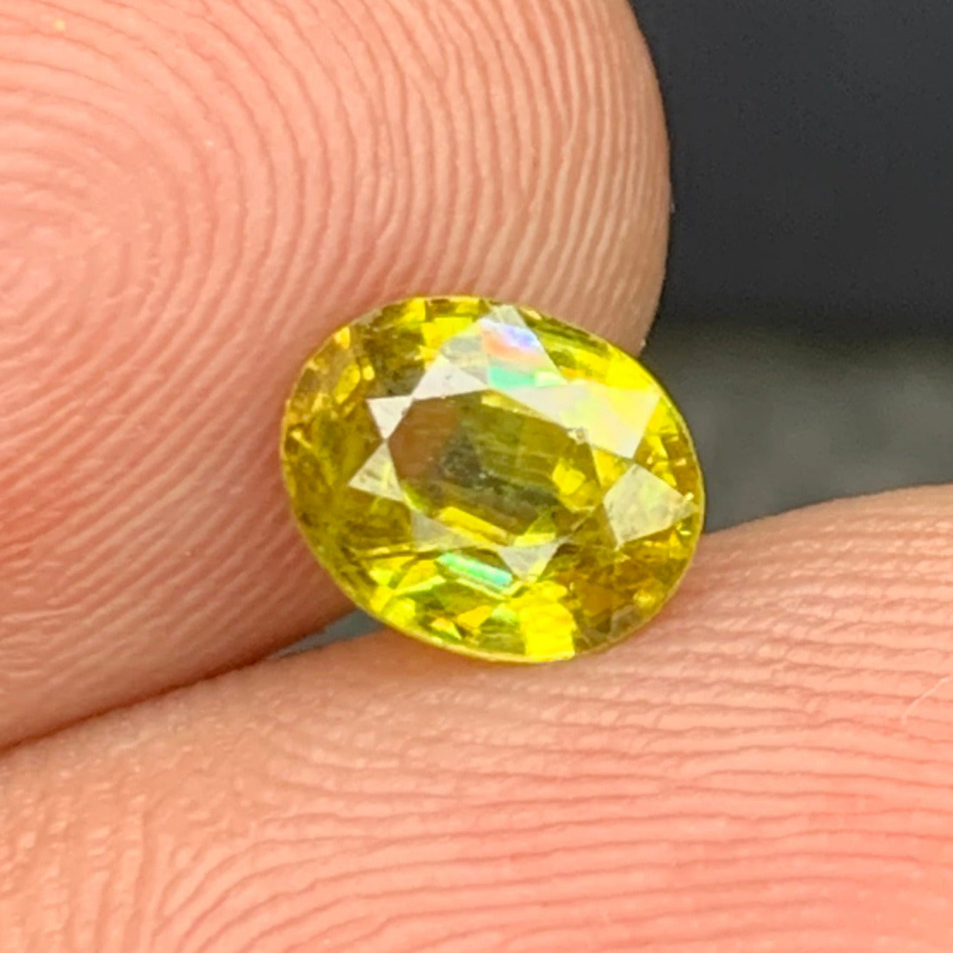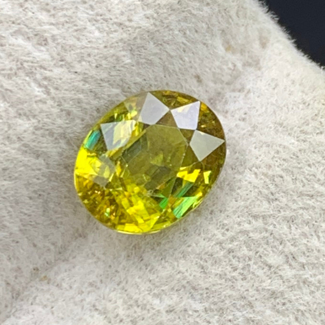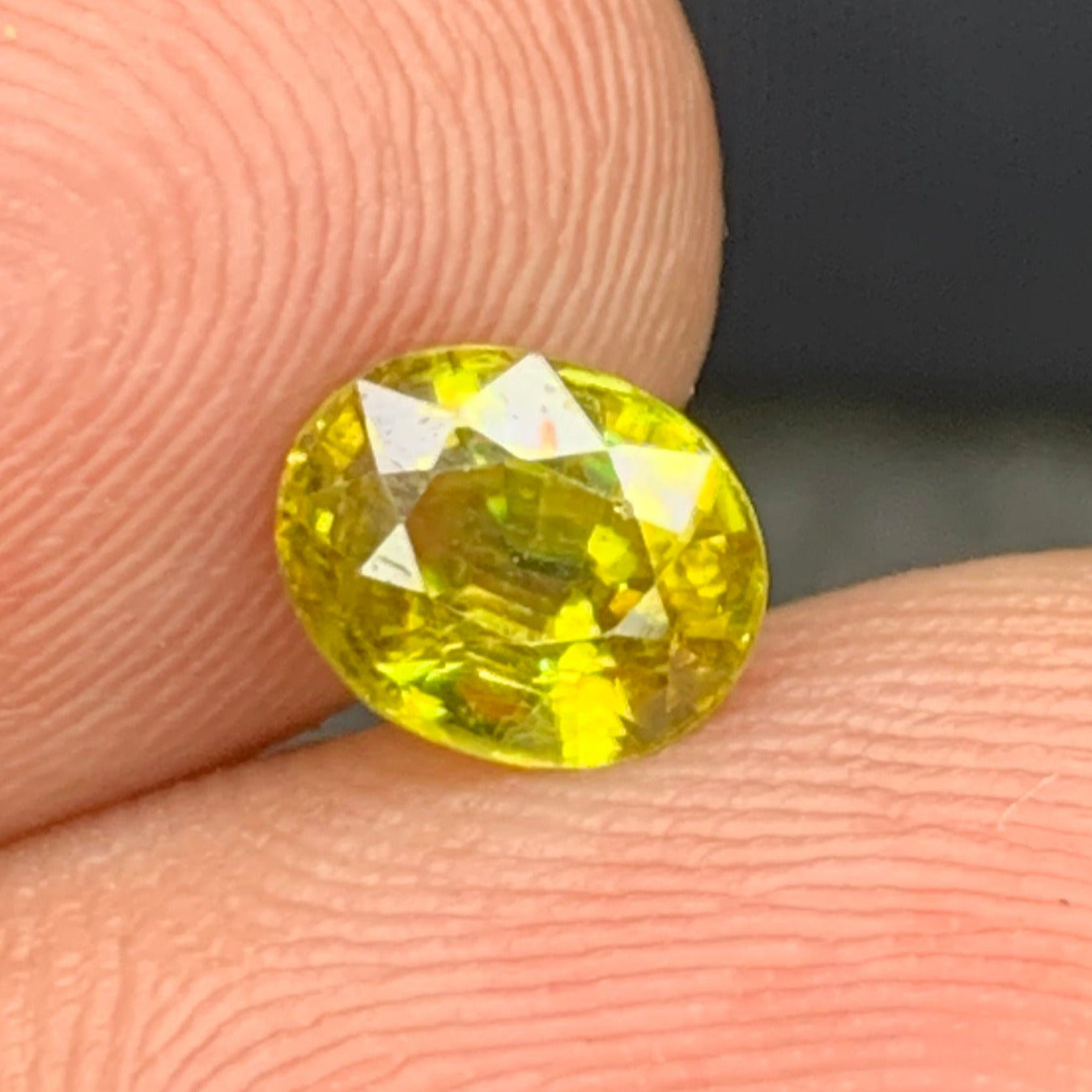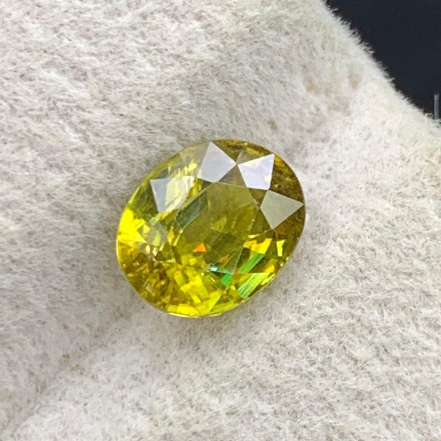 1.45 Carats Glamorous Greenish Yellow Sphene (Titanite) Gemstone – Oval Cut with Dazzling Fire