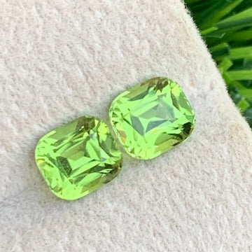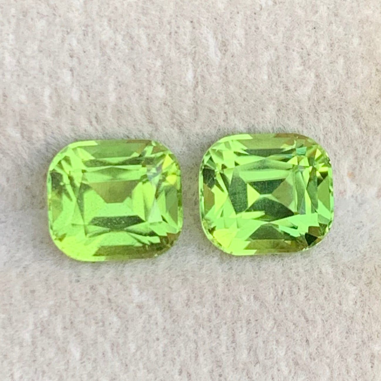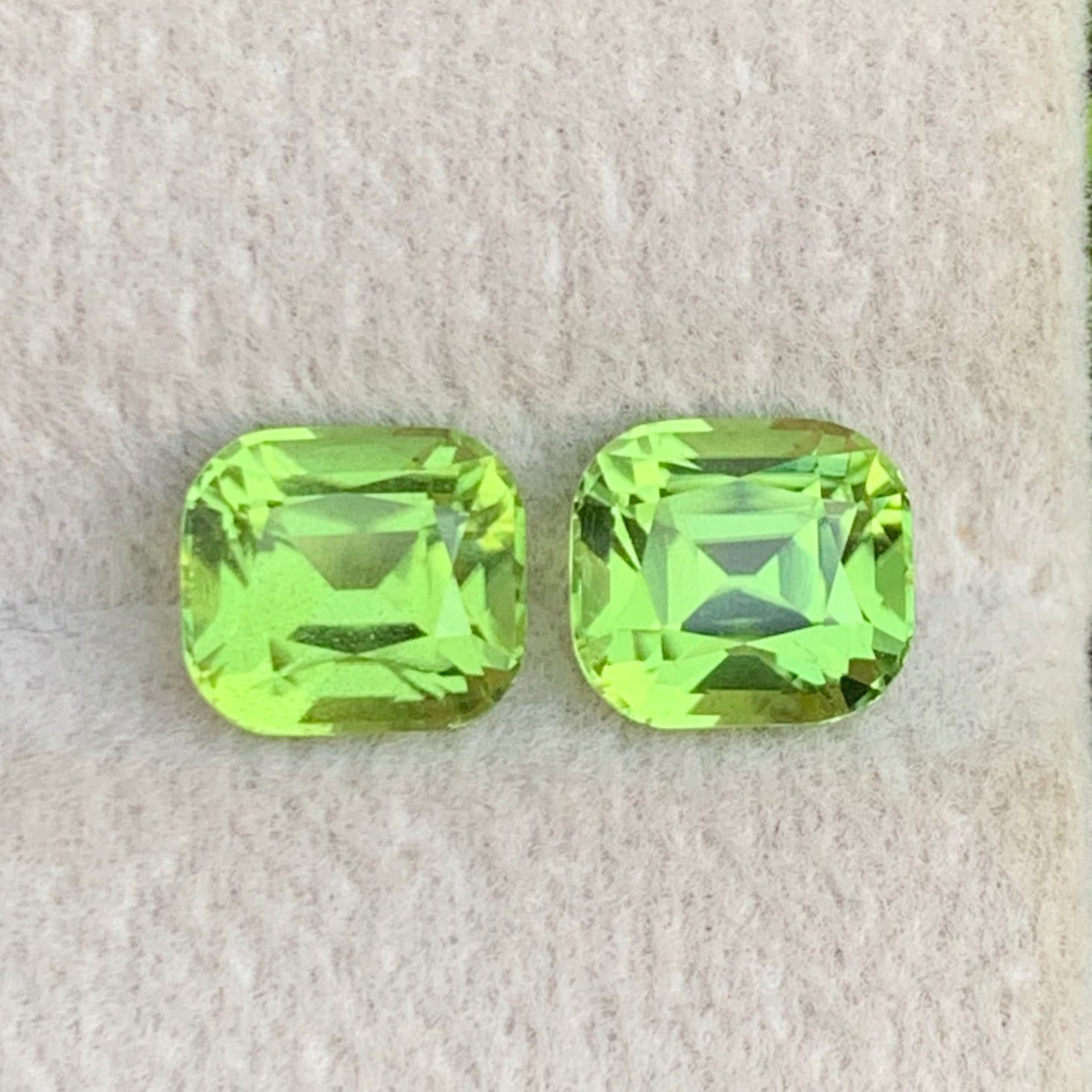 1.70 Carats Green Peridot Gemstone Pair with Cushion Cut, Green Peridot for Earrings