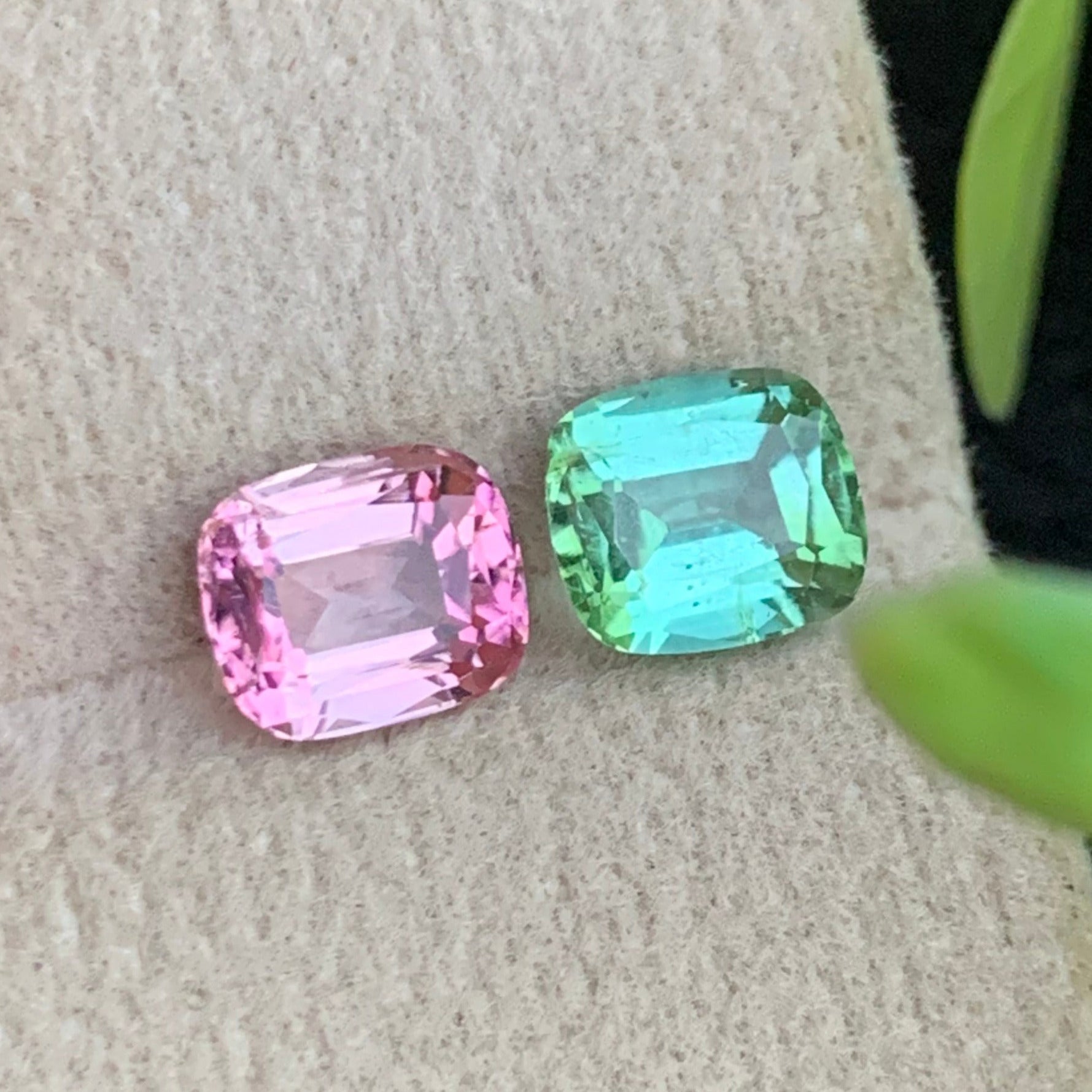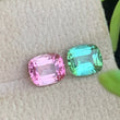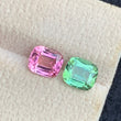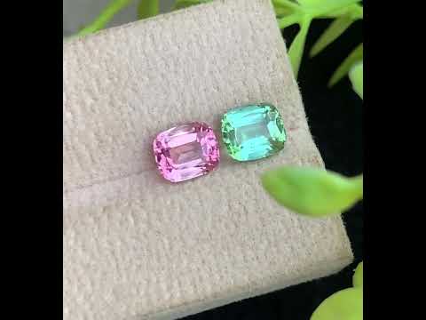 This exquisite pair of unmatched tourmaline gemstones, totaling approximately 2.45 carats, features a refined cushion cut that enhances their natural brilliance and depth of color. Designed as a reverse tourmaline pair, these stones offer a unique symmetry ideal for sophisticated jewelry creations, highlighting the distinctive charm of each gem while maintaining an elegant balance. Perfect for collectors and bespoke designs, their expert cut maximizes light reflection, ensuring striking visual appeal.