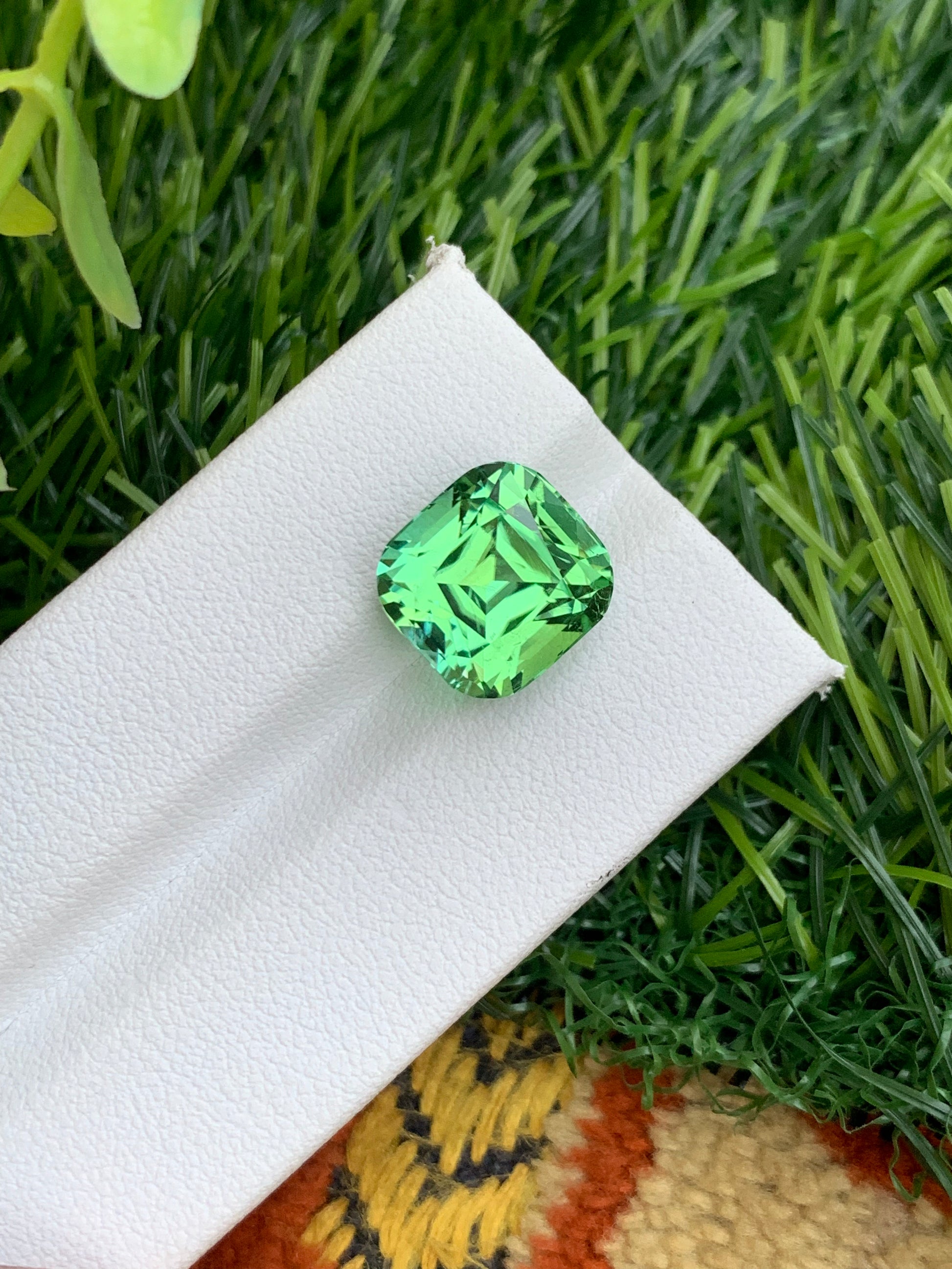 9.10 Carats Apple Green Tourmaline, Loose Afghan Tourmaline - Cushion Shape