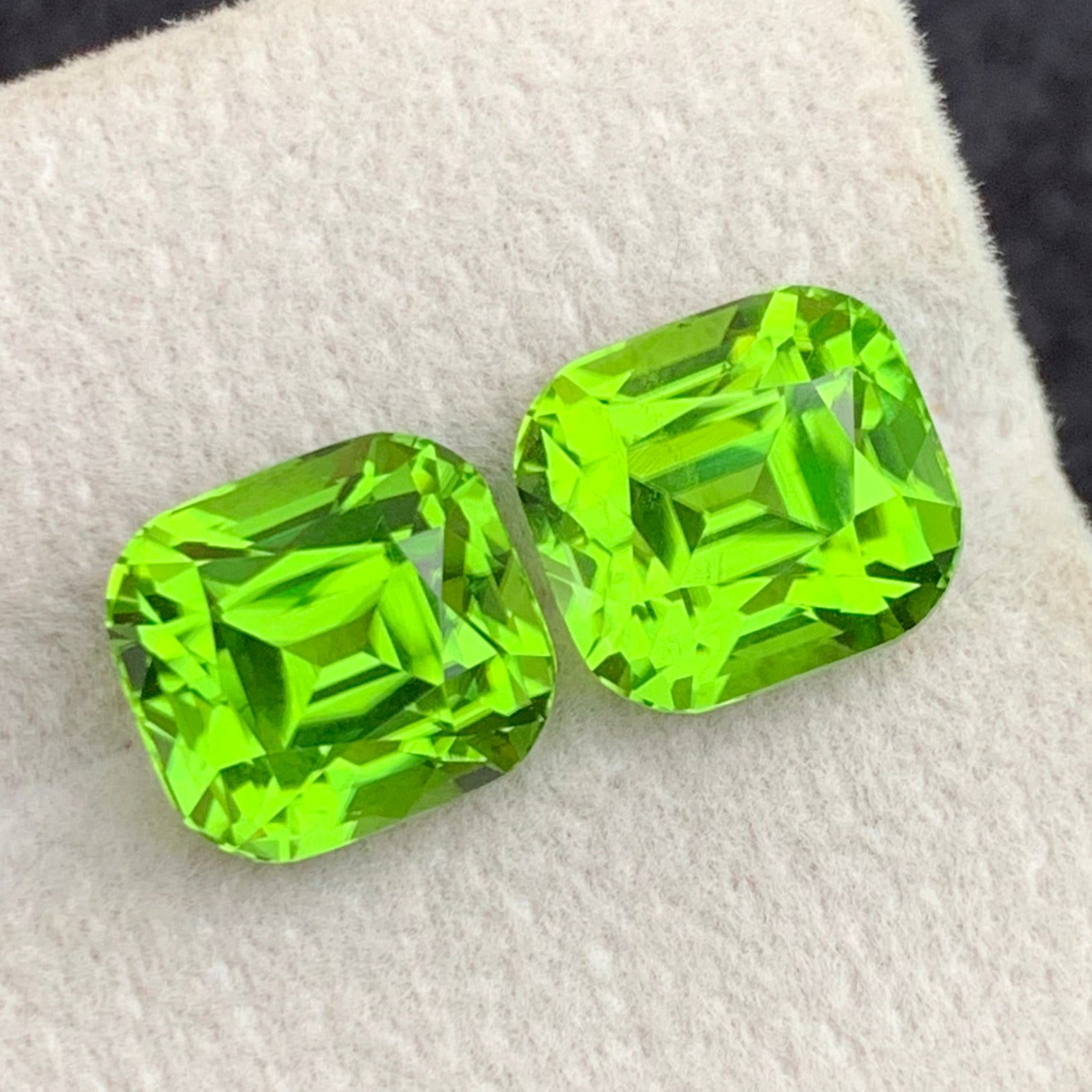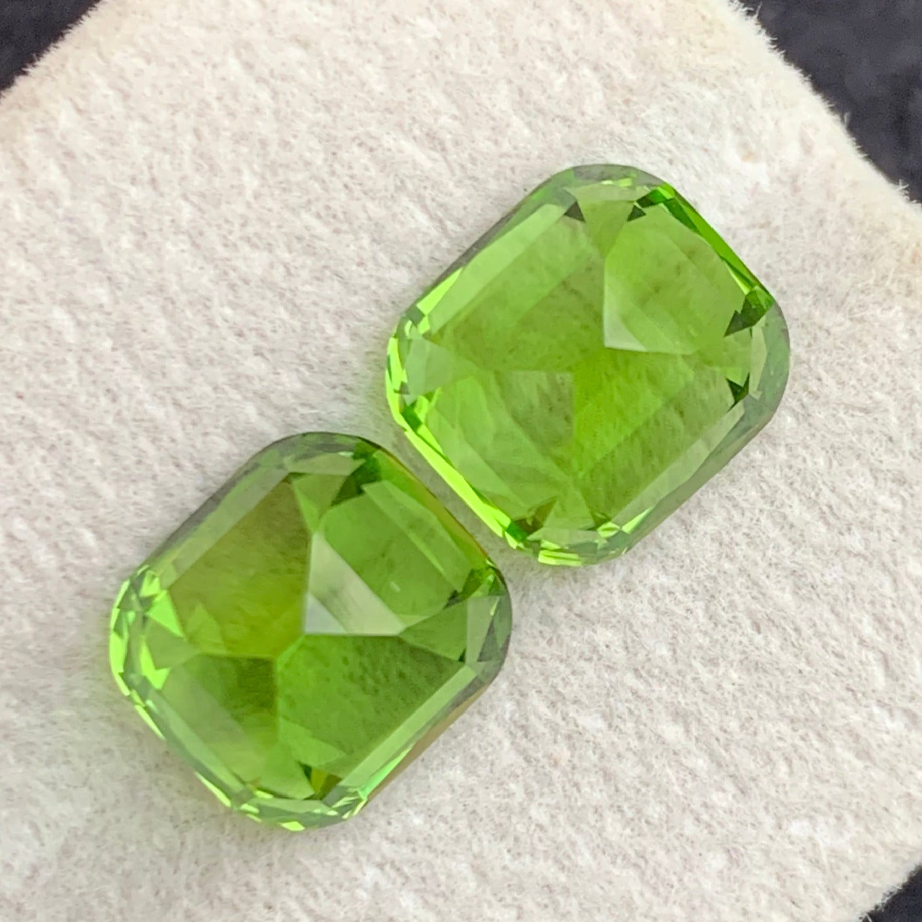 10.60 Carats Natural Green Peridot Gemstone Pair with Cushion Cut, Green Peridot for Earrings
