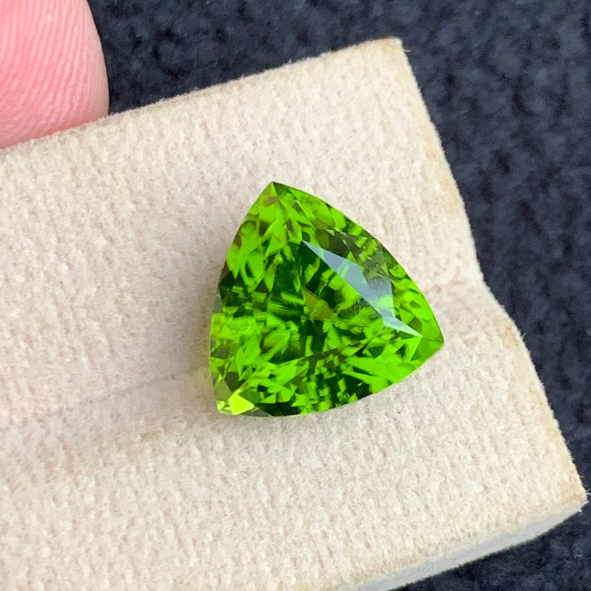 11.00 Carats Luminious Green Peridot Gemstone with triangular Shape from Pakistan