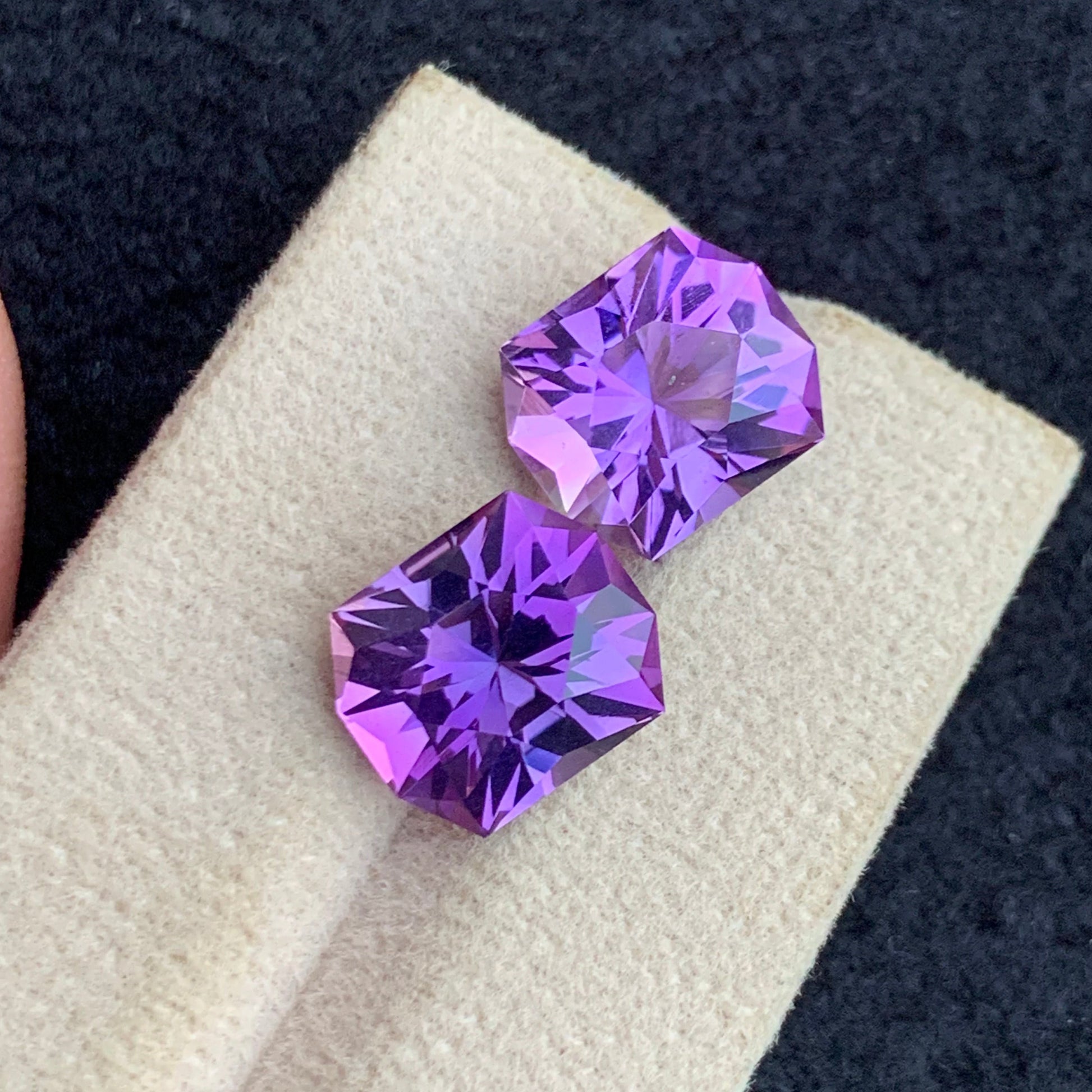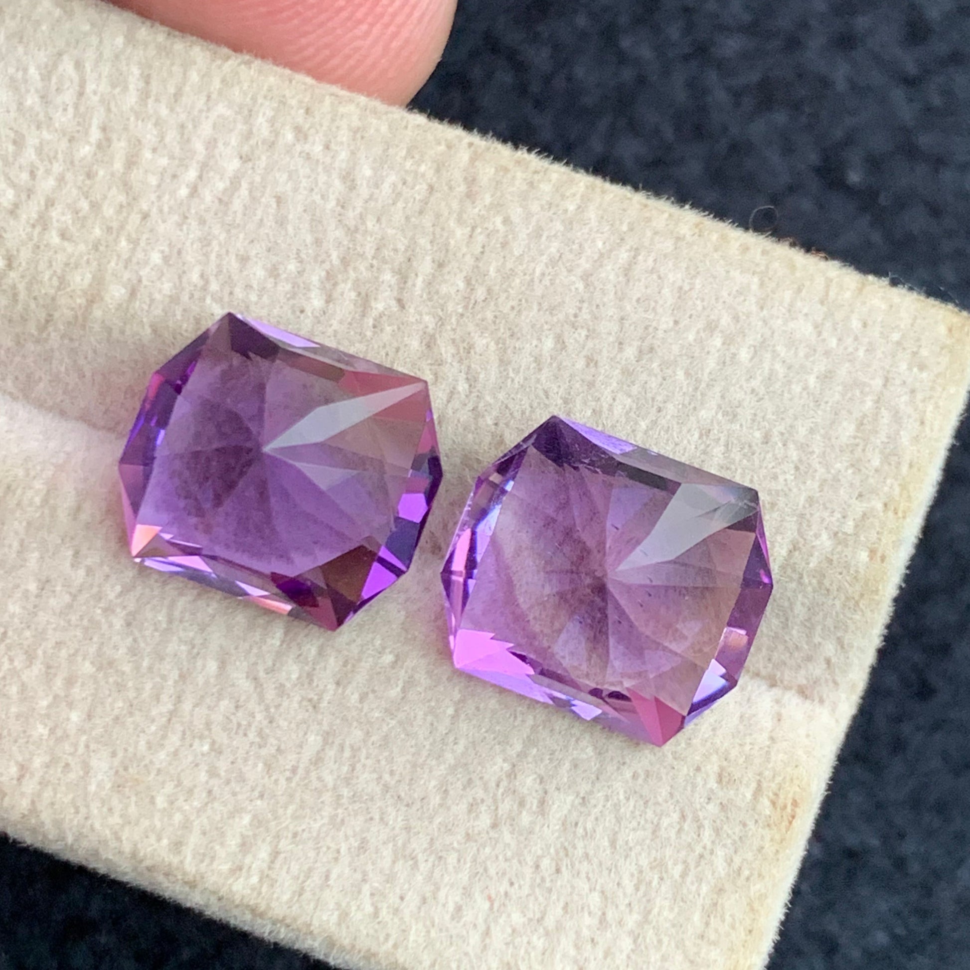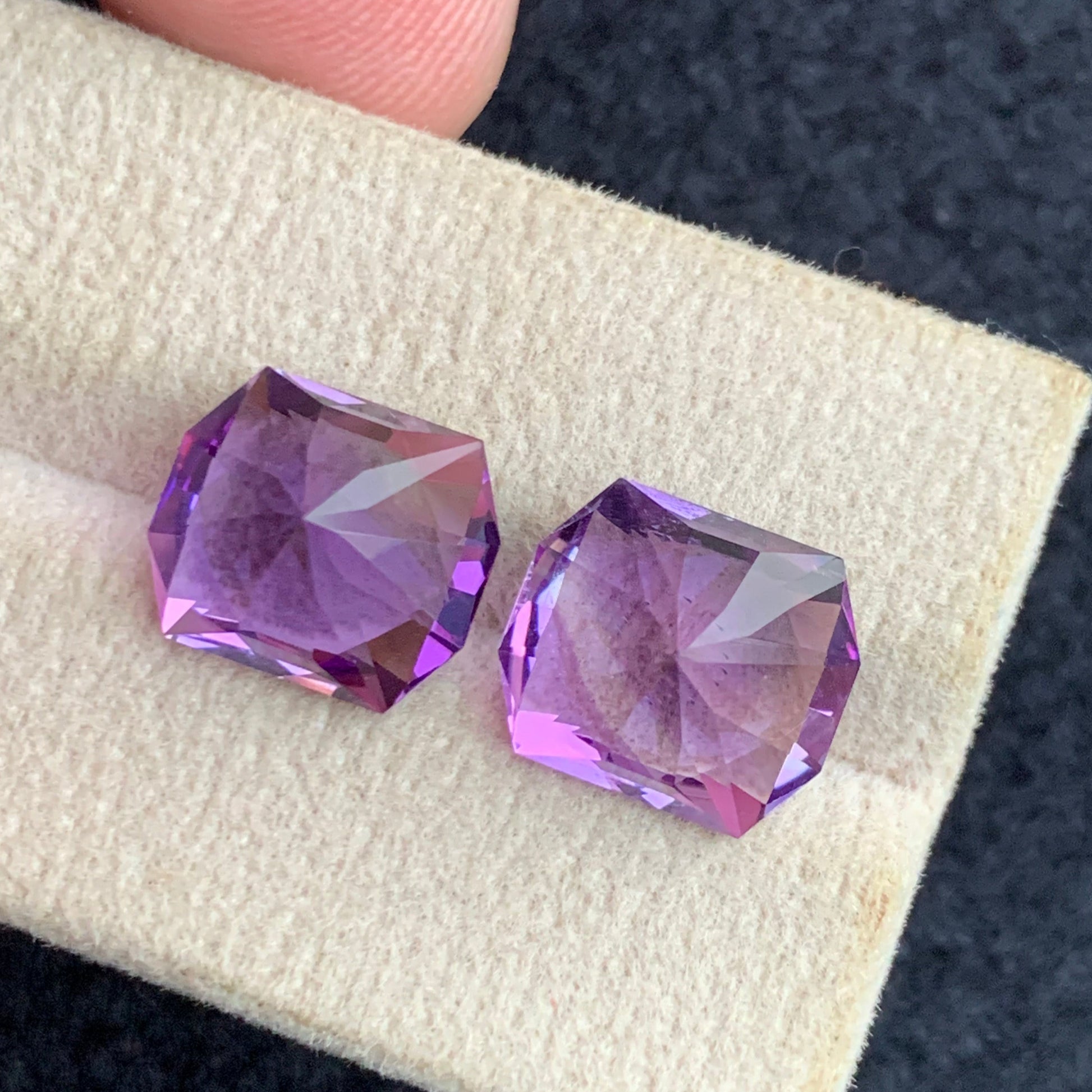 11.10 Carats Natural Pink Purple Amethyst Pair with Fancy Shape