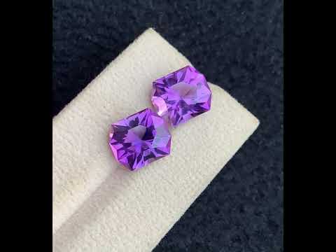 This pair of natural amethysts, totaling 11.10 carats, features a captivating pink-purple hue and a distinctive fancy shape. Their vibrant coloration and precise cutting highlight the stones' clarity and brilliance. Ideal for creating elegant and eye-catching jewelry pieces, these amethysts offer both visual appeal and lasting value for collectors and designers seeking quality and uniqueness.