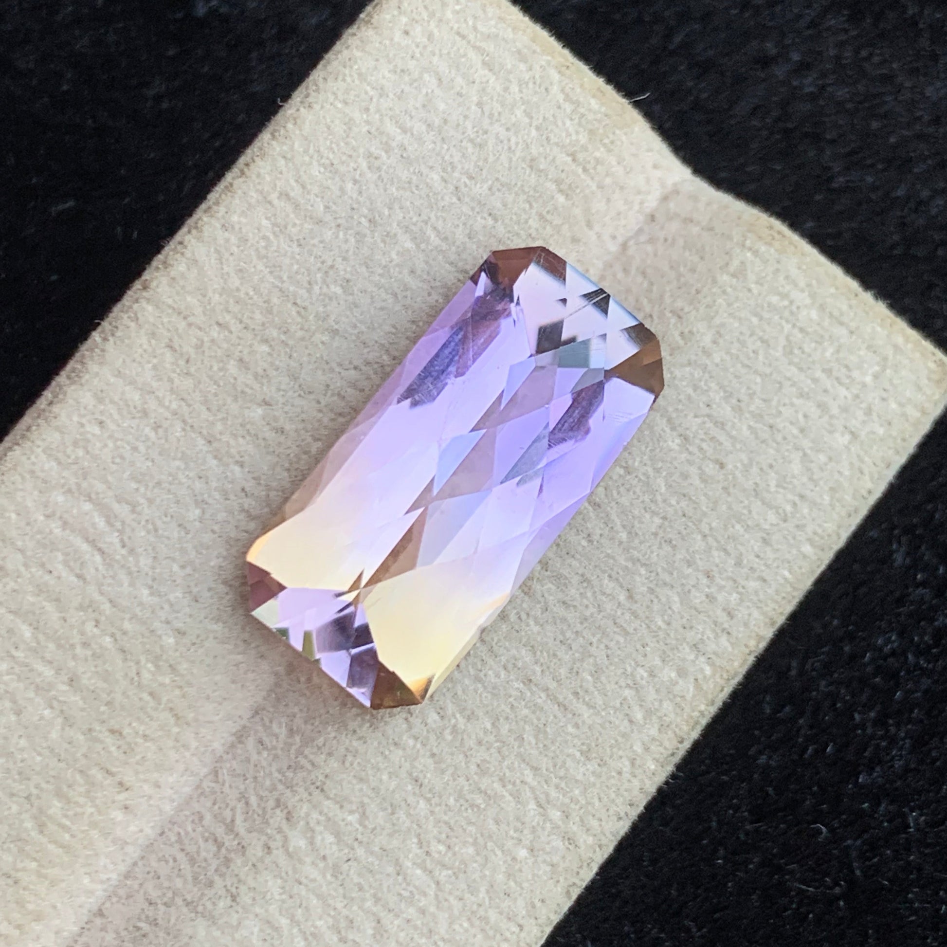 This exceptional 11.40 Carats ametrine gemstone showcases the mesmerizing blend of amethyst and citrine hues in a single stone. The fancy cut maximizes color saturation and brilliance, revealing the distinctive purple and golden tones that make ametrine highly sought after by collectors and jewelry designers. With loup clean clarity, this loose gemstone is free from visible inclusions under magnification, ensuring exceptional transparency and light performance.