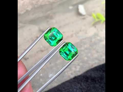 A stunning matched pair of cushion-cut tourmalines totaling 11.51 carats, showcasing vibrant bluish-green hues with excellent clarity and precision faceting. These premium gemstones exhibit lively brilliance and rich color saturation, ideal for fine jewelry, earrings, or a bespoke design piece.