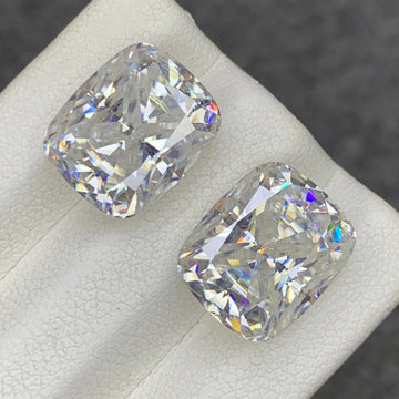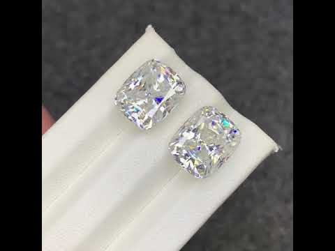 Discover the brilliance of this 12.70 carats white Moissanite gemstone pair, gracefully cut in a long cushion shape. Combining the soft elegance of a cushion cut with the fiery sparkle of Moissanite, this pair offers a glamorous and timeless look, perfect for custom fine jewelry.