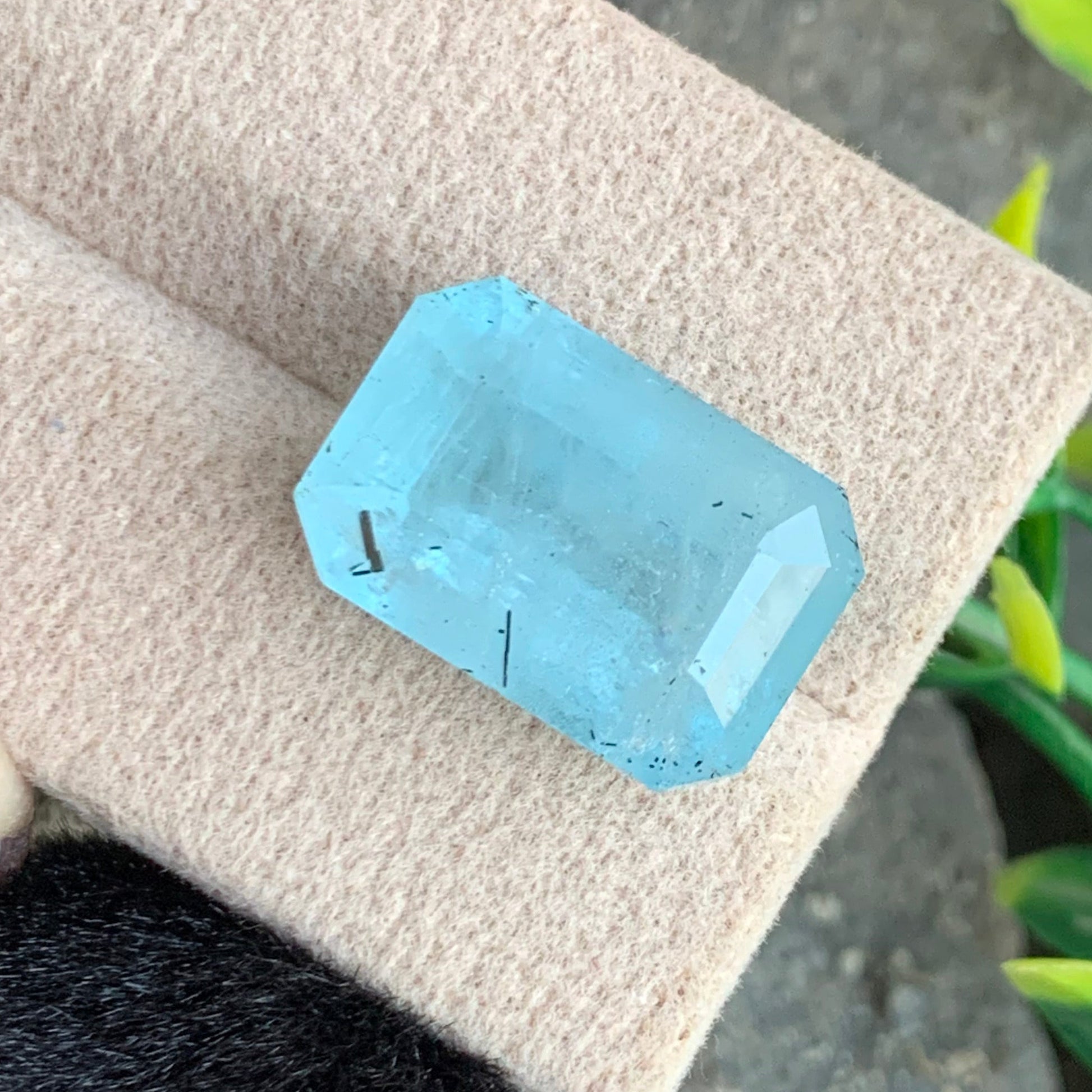 13.82 Carats aquamarine, a premium gemstone showcasing the coveted emerald cut. This high quality specimen displays the serene blue-green hues aquamarine is renowned for, with excellent clarity and brilliant light performance. The precise emerald faceting enhances its natural beauty while maximizing visual impact. Ideal for bespoke jewelry designs, collectors, or those seeking a sophisticated gemstone investment.