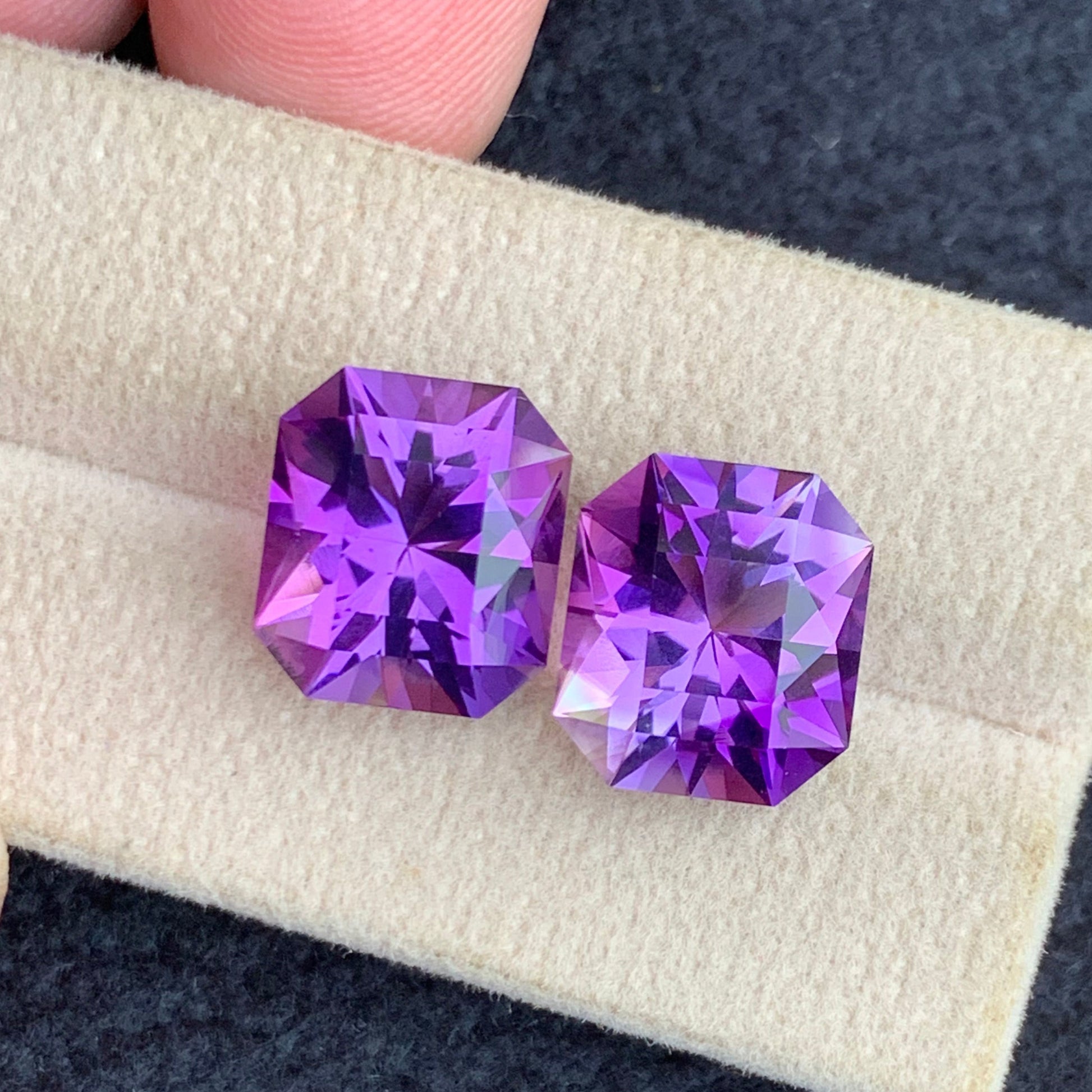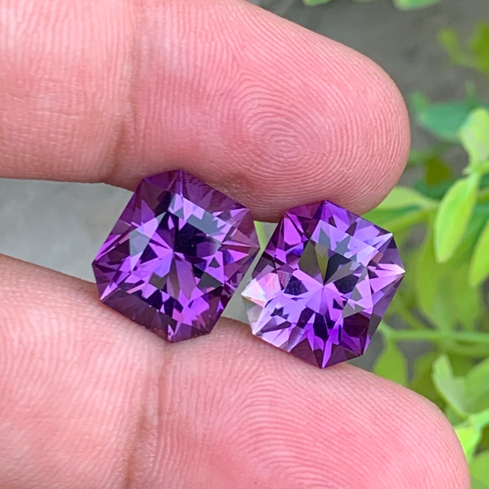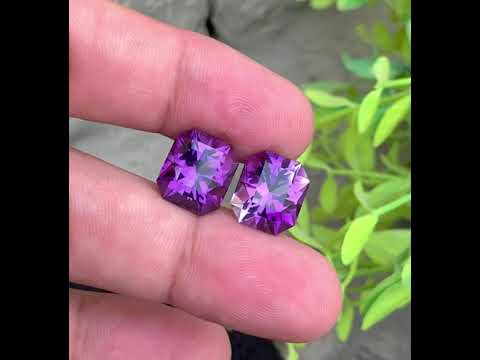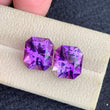 Enhance your collection with this exquisite pair of natural amethysts, weighing a combined 16.55 carats. Displaying a captivating blend of pink and purple hues, these stones are expertly cut into unique fancy shapes that highlight their natural brilliance and depth. Ideal for bespoke jewelry projects, they bring a sophisticated and rare touch for connoisseurs seeking exceptional gemstones.