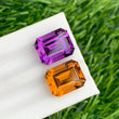 17.95 Carats Reverse Amethyst Citrine Pair – Natural Emerald Cut Gemstones from Brazil