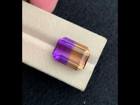 This 18.35-carats natural Ametrine gemstone from Brazil showcases a stunning emerald cut, highlighting the unique blend of amethyst and citrine hues characteristic of ametrine. Its precise facets enhance light reflection, making it an exceptional choice for sophisticated jewelry designs. Sourced directly from Brazil, this gemstone combines rarity and refined elegance, ideal for collectors and connoisseurs seeking a distinctive and high-quality loose stone.