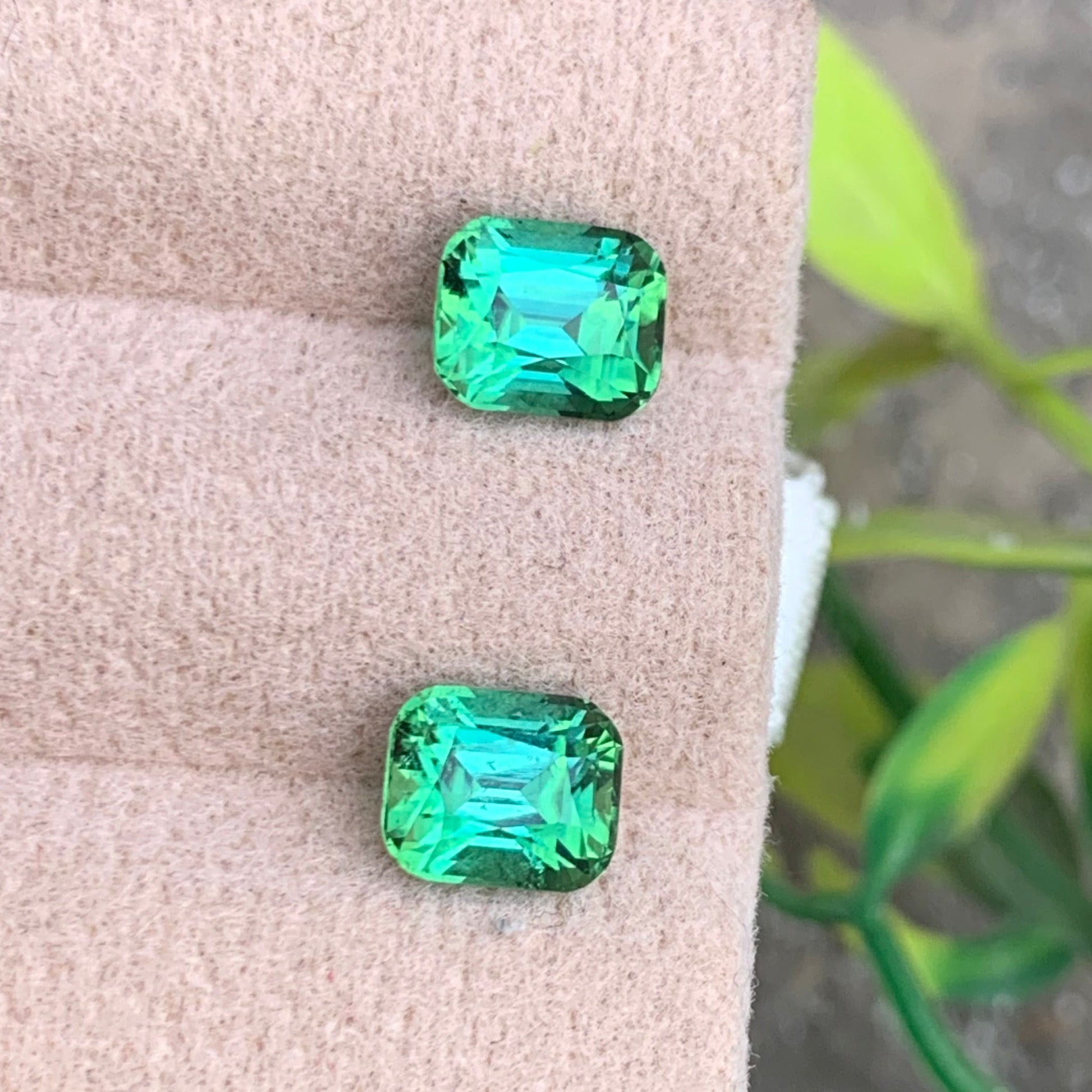2.01 Carats High Quality Faceted Bluish Green Tourmaline Pair, Cushion Shape