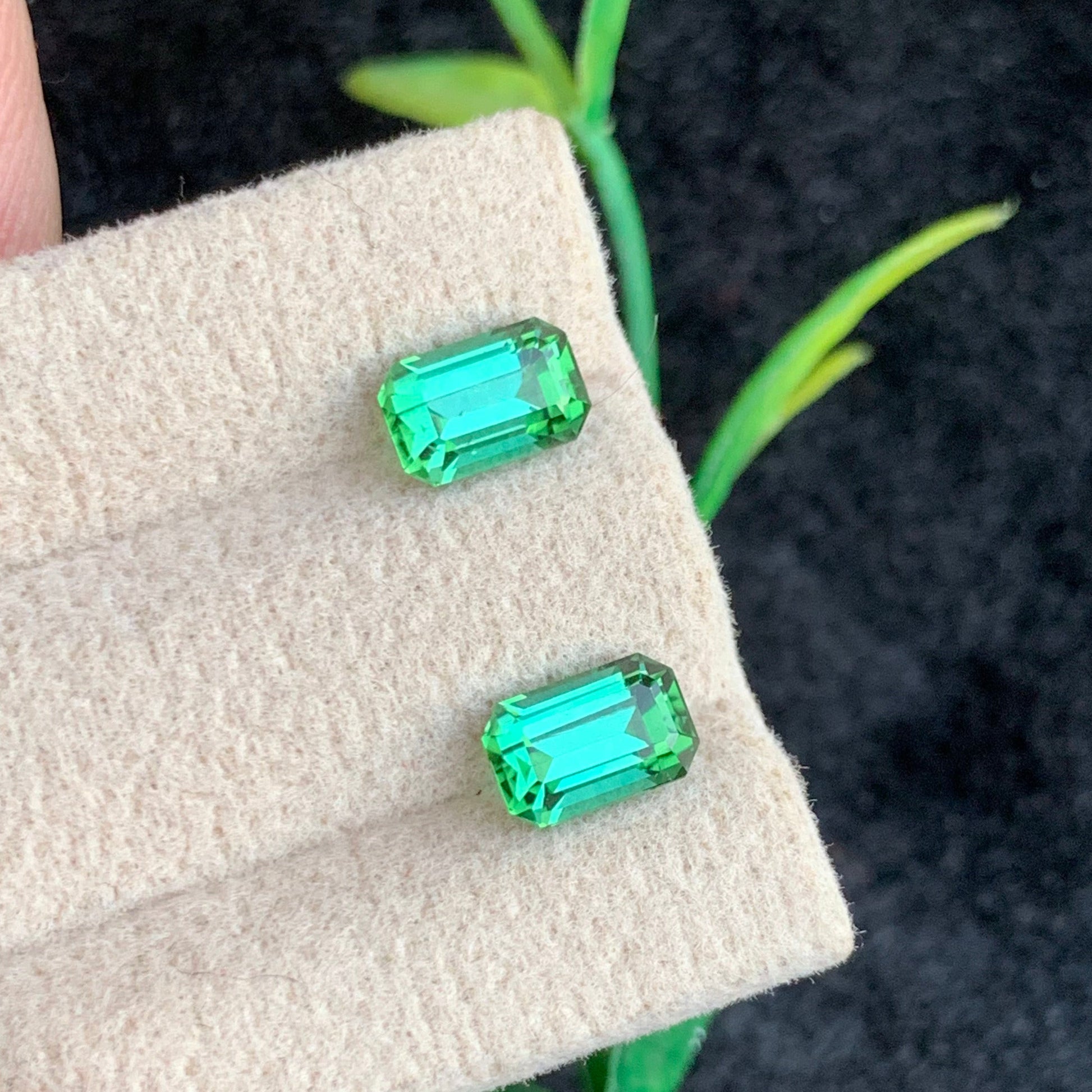 A stunning matched pair of bluish-green tourmalines totaling 2.23 Carats, expertly cut in the classic emerald shape. These gemstones showcase a captivating cool-toned hue with exceptional brilliance and clarity. The emerald cut enhances their natural transparency, allowing light to dance through each stone with remarkable radiance. Ideal for bespoke jewelry designs, these tourmalines offer versatility and sophistication. Each stone is carefully selected to ensure consistent quality and color matching, making them perfect for creating balanced, harmonious pieces that command attention.