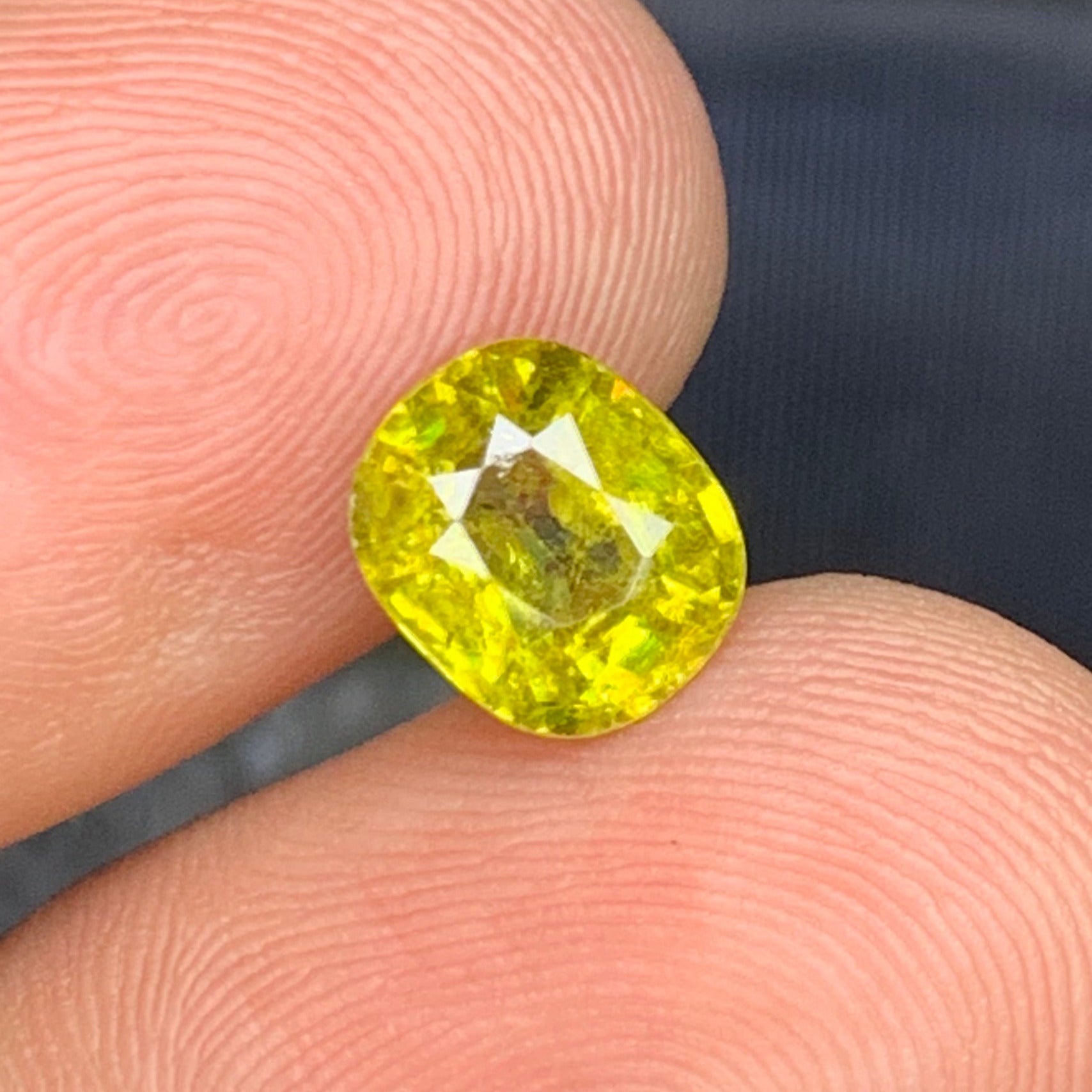 2.25 Carats Glamorous Greenish Yellow Sphene (Titanite) Gemstone – Oval Cut Beauty for Unique Sphene Jewelry
