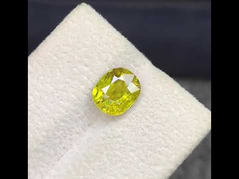 This 2.25-carats oval sphene (titanite) gemstone showcases a captivating greenish-yellow hue, prized for its exceptional brilliance and fire. Its unique color and clarity make it an exquisite choice for sophisticated jewelry designs, offering both rarity and visual impact. Ideal for collectors and connoisseurs seeking a distinctive gemstone with remarkable optical properties.