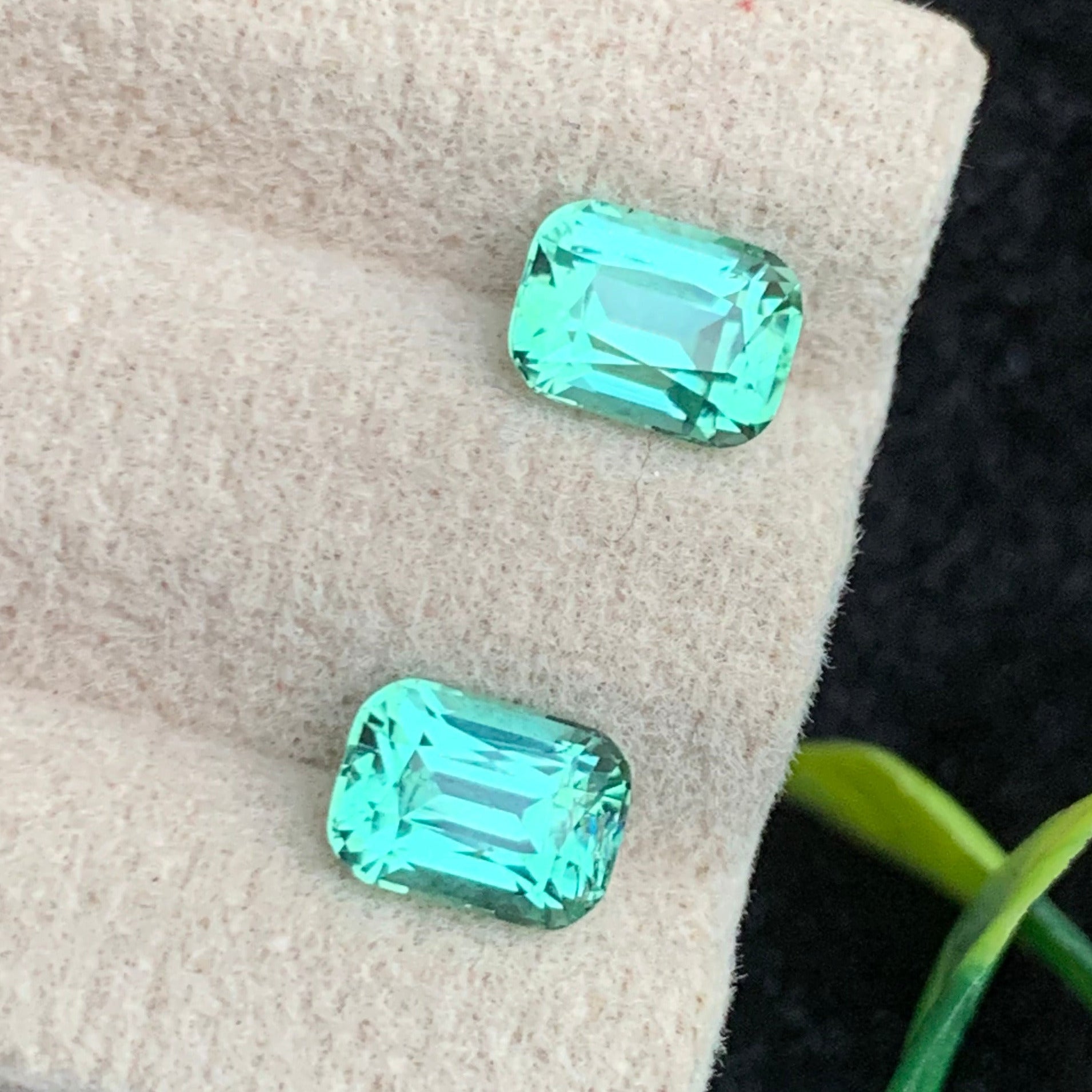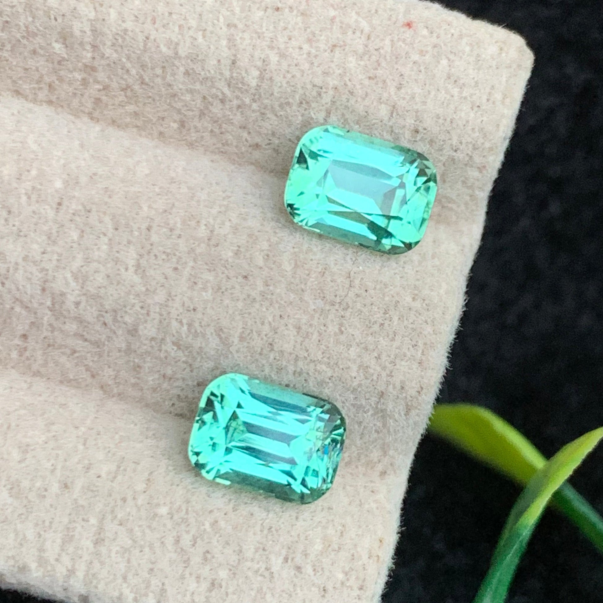 2.40 Carats Precious Seafoam Green Tourmaline Pair, Cushion Shape from Afghanistan
