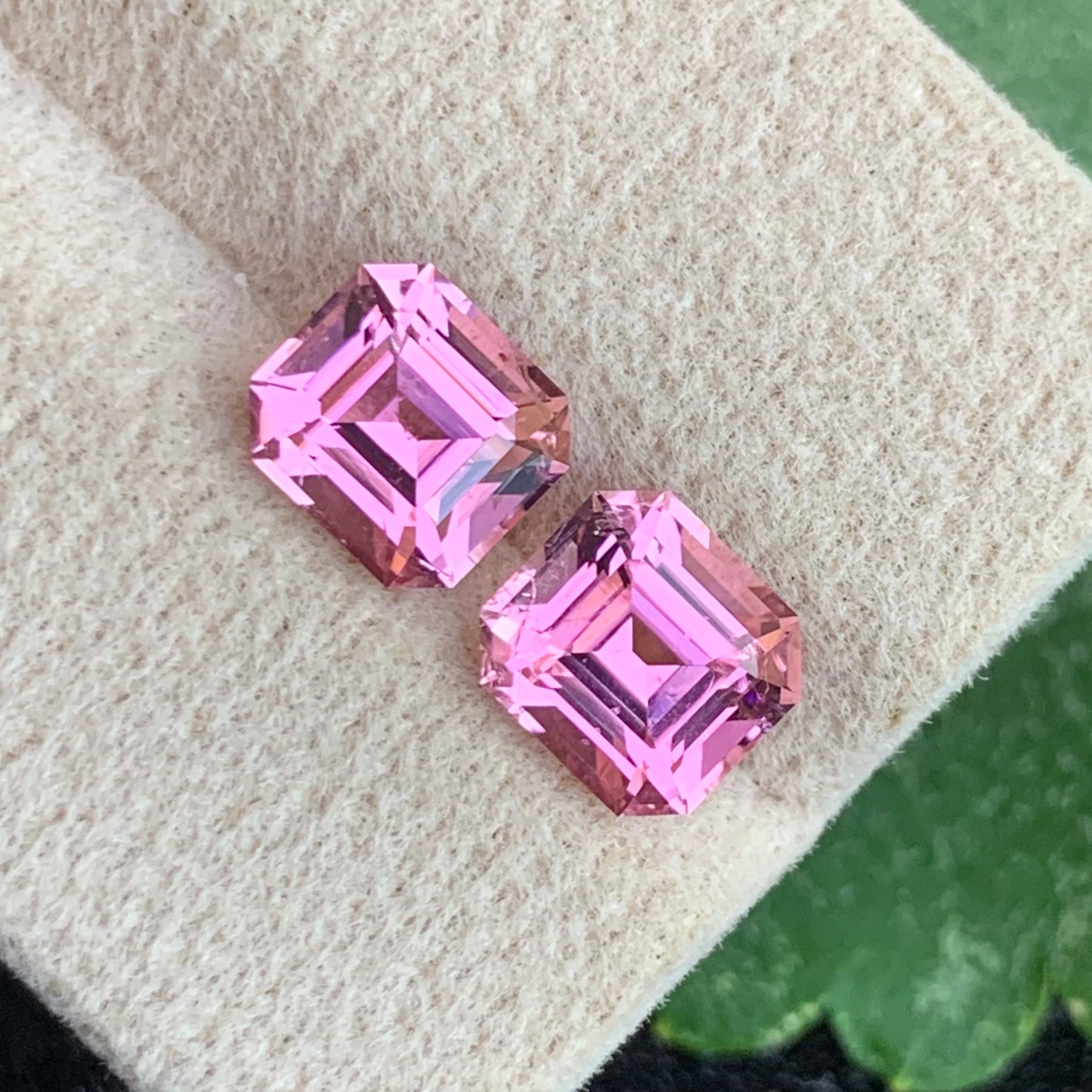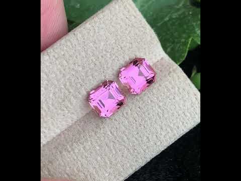 3.29 Carat natural baby pink tourmaline pair, beautifully matched and precision-cut in a sophisticated Asscher shape. These delicate gemstones display a soft, romantic pink hue that radiates elegance and femininity, making them perfect for fine jewelry creations. Carefully selected for symmetry, color harmony, and brilliance, this matching pair is ideal for crafting elegant earrings or bespoke designer jewelry pieces.