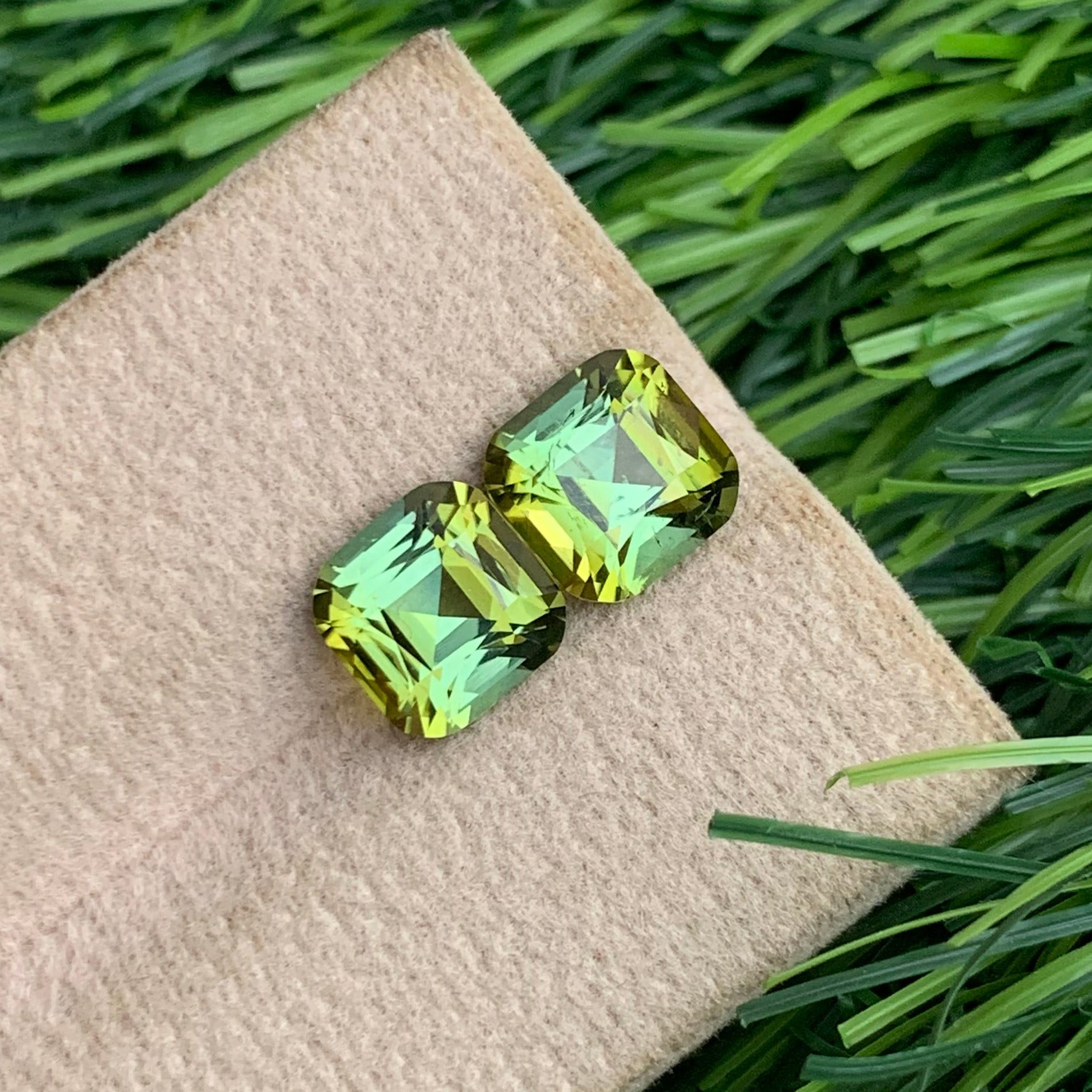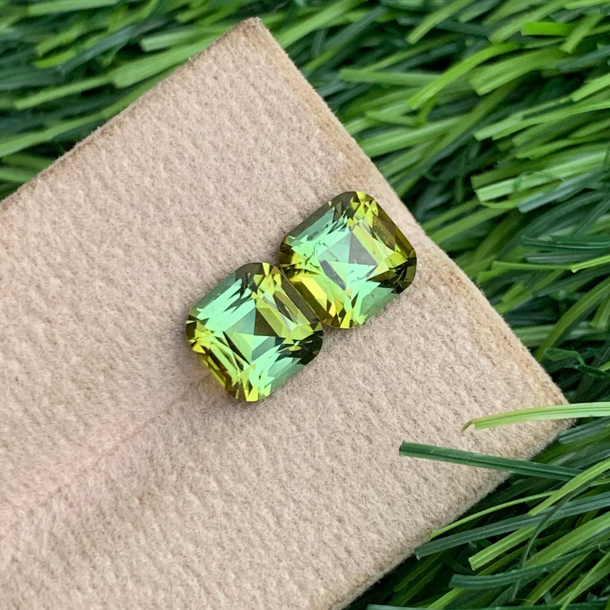 3.50 Carats Bluish Green Tourmaline Pair having Yellow Touch | Cushion Cut from Afghanistan