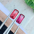 This expertly cut pink garnet pair showcases a radiant pinkish-red hue that brings both warmth and elegance. Its emerald cut maximizes brilliance, making it a luxurious choice for crafting fine jewelry, especially earrings or custom designs.