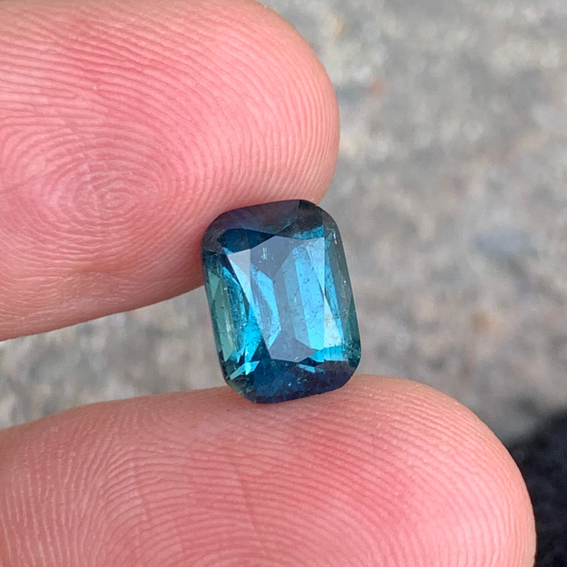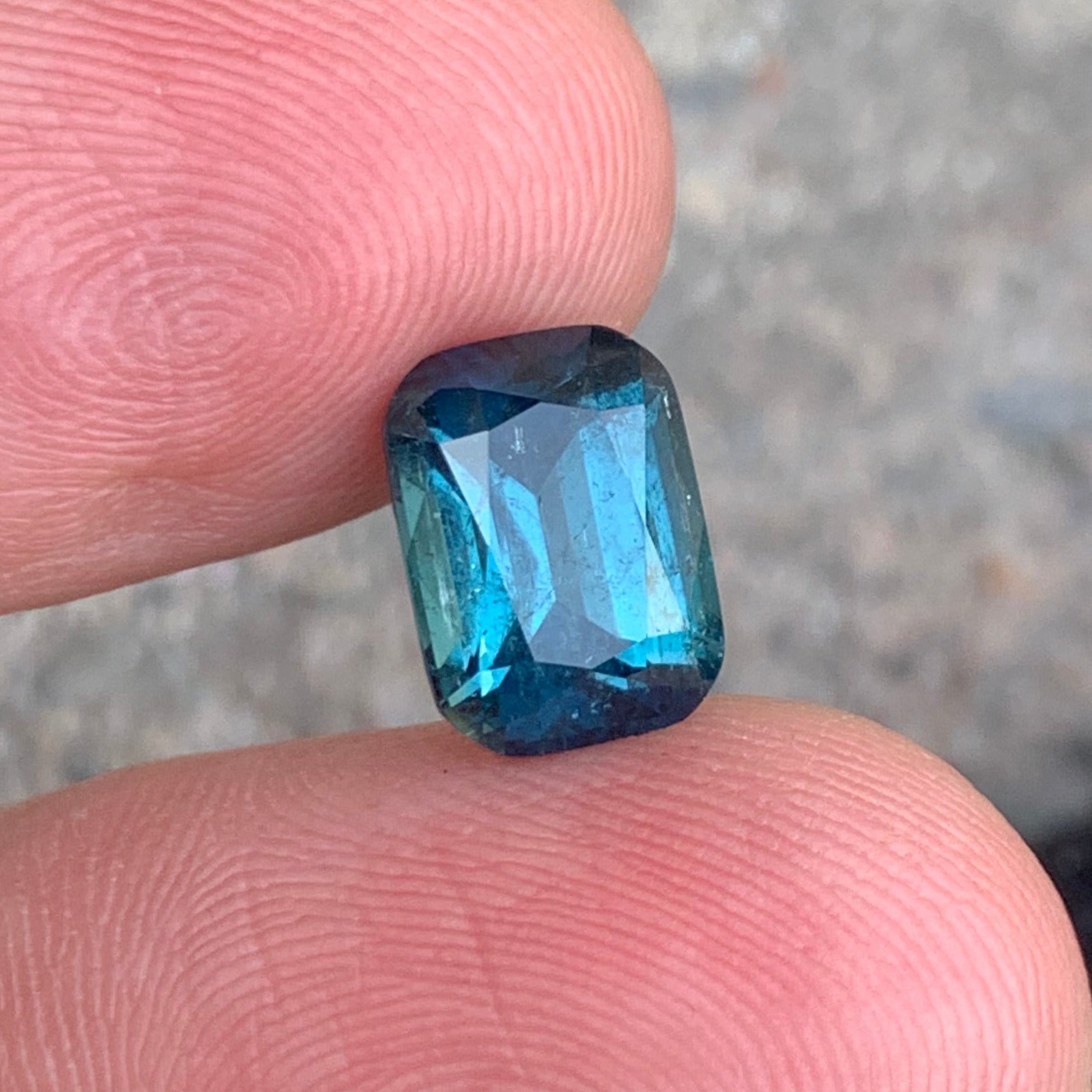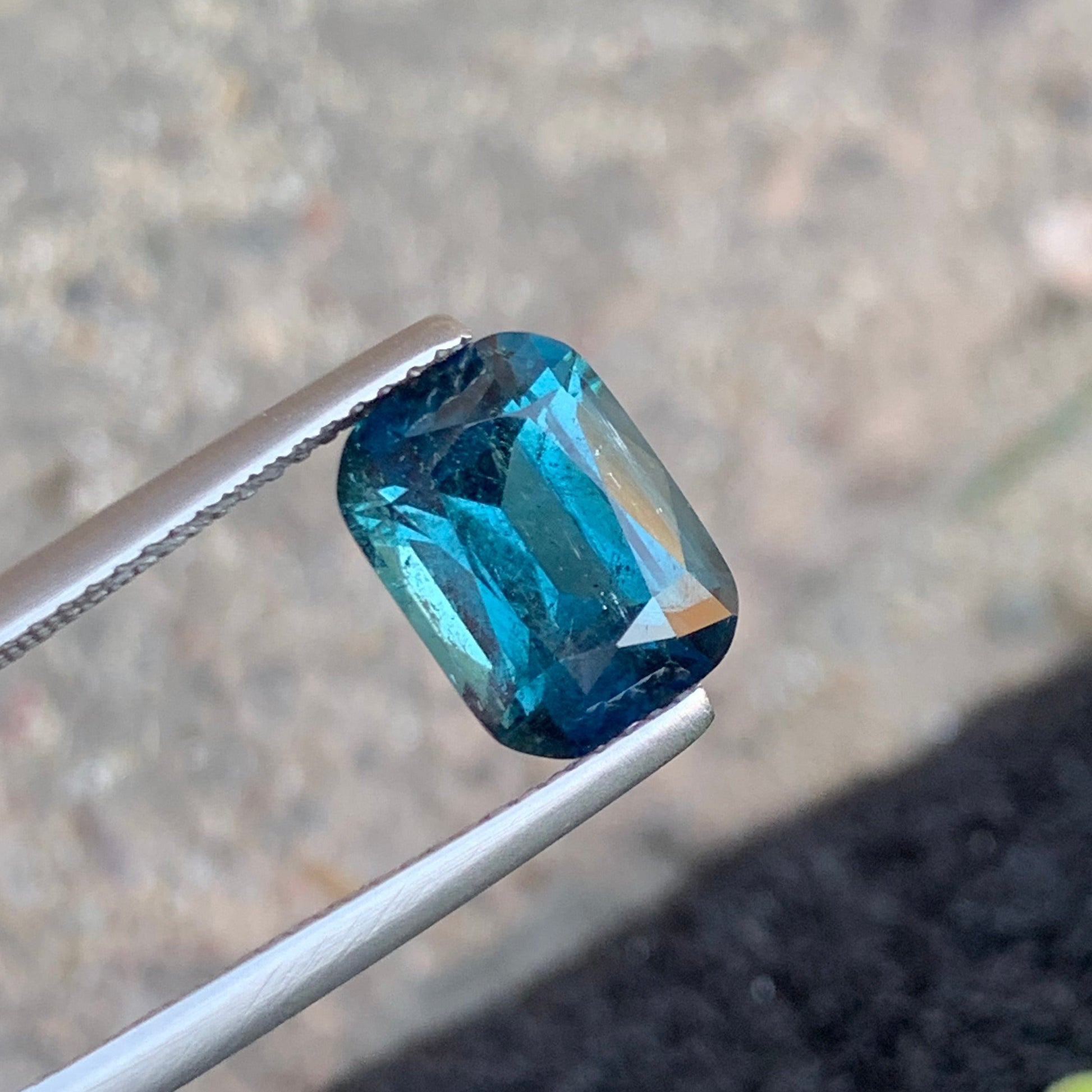 3.71 carats Glamorous Ink Blue Tourmaline from Afghanistan features a beautifully crafted cushion cut that enhances its brilliance and elegant appearance. Its rich color and fine faceting make it a striking gemstone for high-end jewelry.