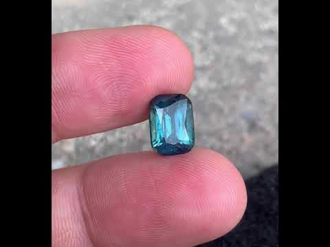 The gemstone displays a captivating ink blue color with excellent luster and appealing transparency. The cushion shape allows light to reflect beautifully, giving the stone a vibrant sparkle and luxurious look.