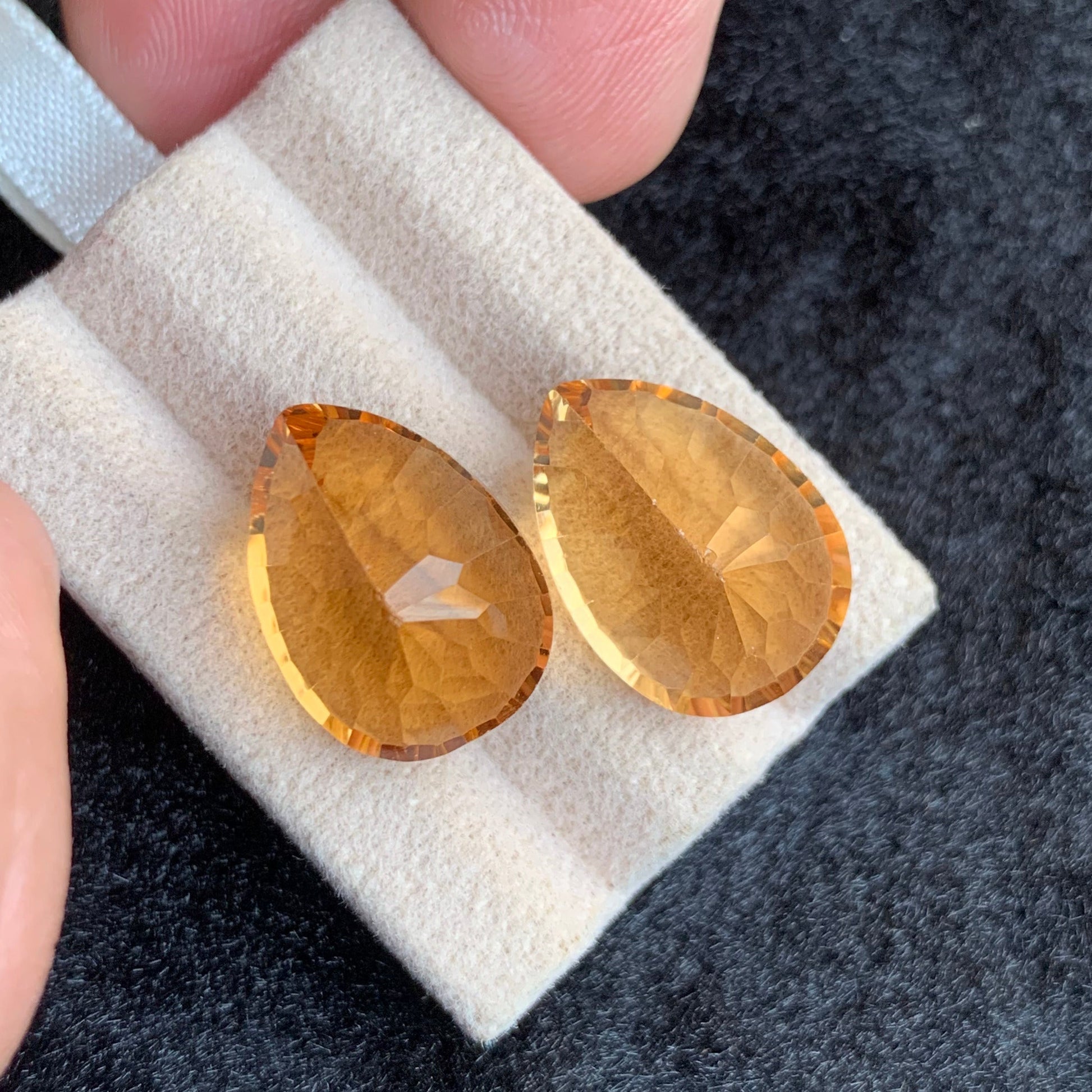 30.37 Carats Faceted Honey Citrine Pair from Brazil, Pair Cut – Premium Citrine Gemstone