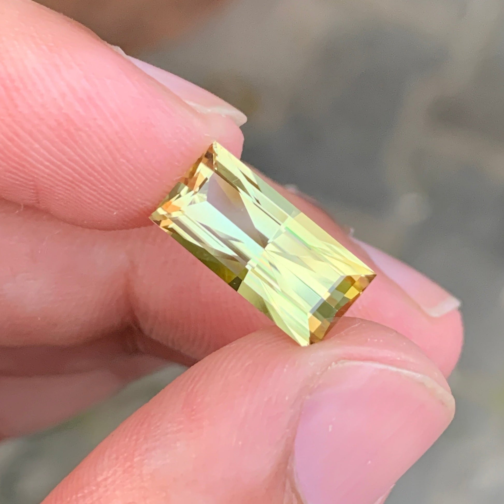 4.18 Carats Greenish Yellow Tourmaline with Fancy Baguette Cut from Afghanistan