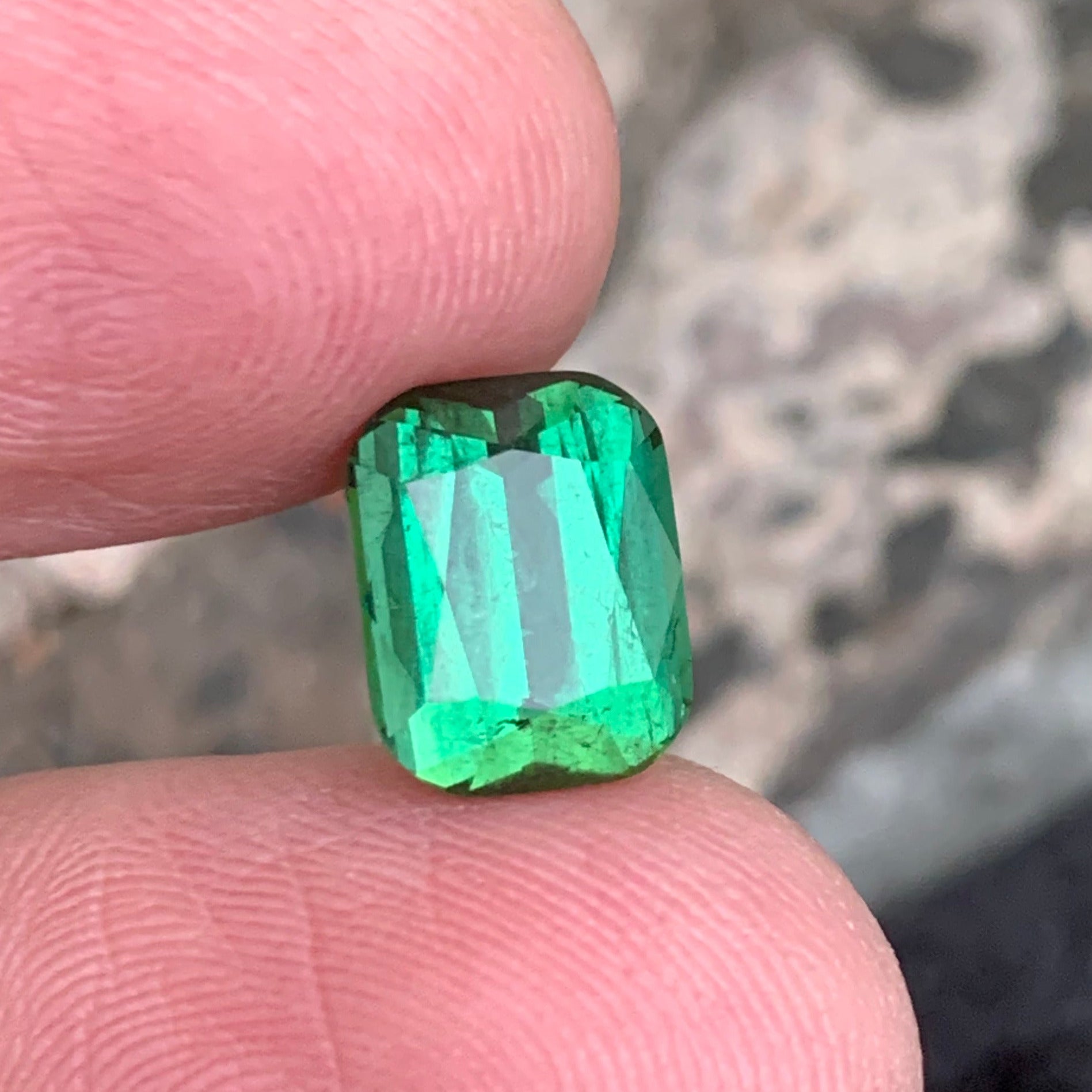This exceptional 4.53 Carats tourmaline showcases a vibrant bright green hue that captures light with remarkable brilliance. Cut in a classic cushion shape, the stone's generous faceting enhances its natural saturation and clarity. Tourmaline of this caliber and color intensity is highly sought after by collectors and jewelers alike. The cushion cut provides excellent light performance while maximizing the gemstone's visual impact.