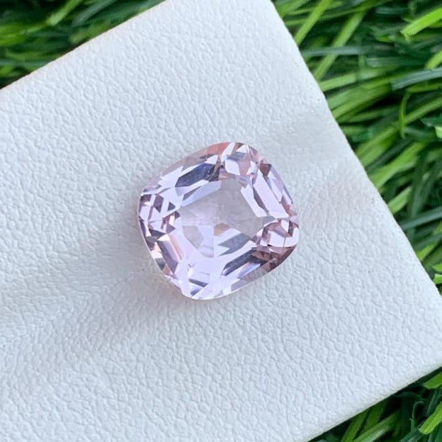 This exquisite 4.81 Carats kunzite gemstone showcases a delicate light pink hue characteristic of premium Afghan specimens. The skillfully executed cushion cut maximizes the stone's natural brilliance and color saturation, revealing the gem's inherent transparency and luminosity. Kunzite, a variety of spodumene, is prized by collectors for its pleochroic properties and ethereal beauty. This particular stone demonstrates excellent clarity and a refined pale rose tone that appeals to both gemstone enthusiasts and jewelry.