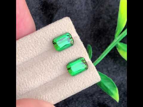 5.00 Carats Vivid Bluish Green Tourmaline Pair with Cushion Shape from Afghanistan
