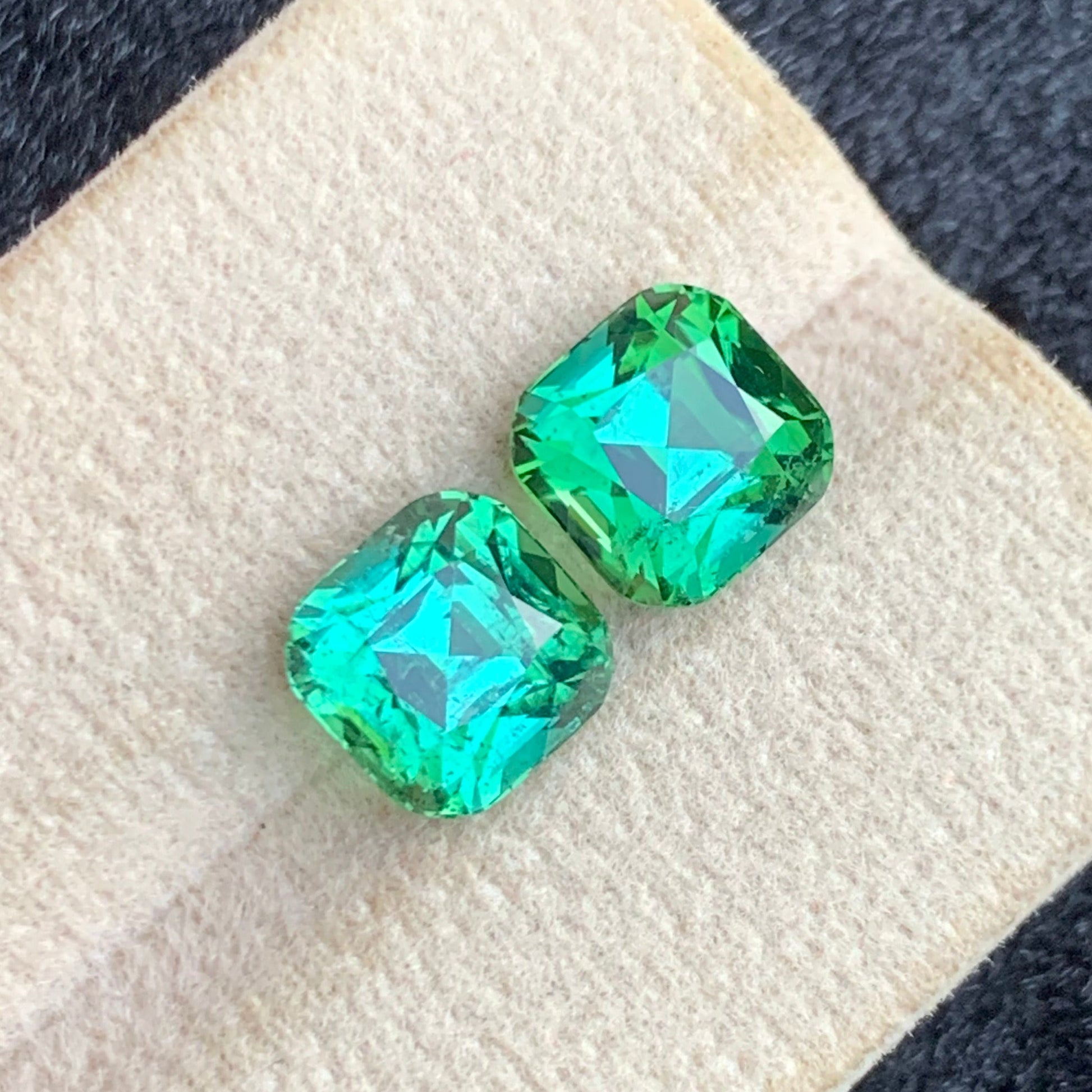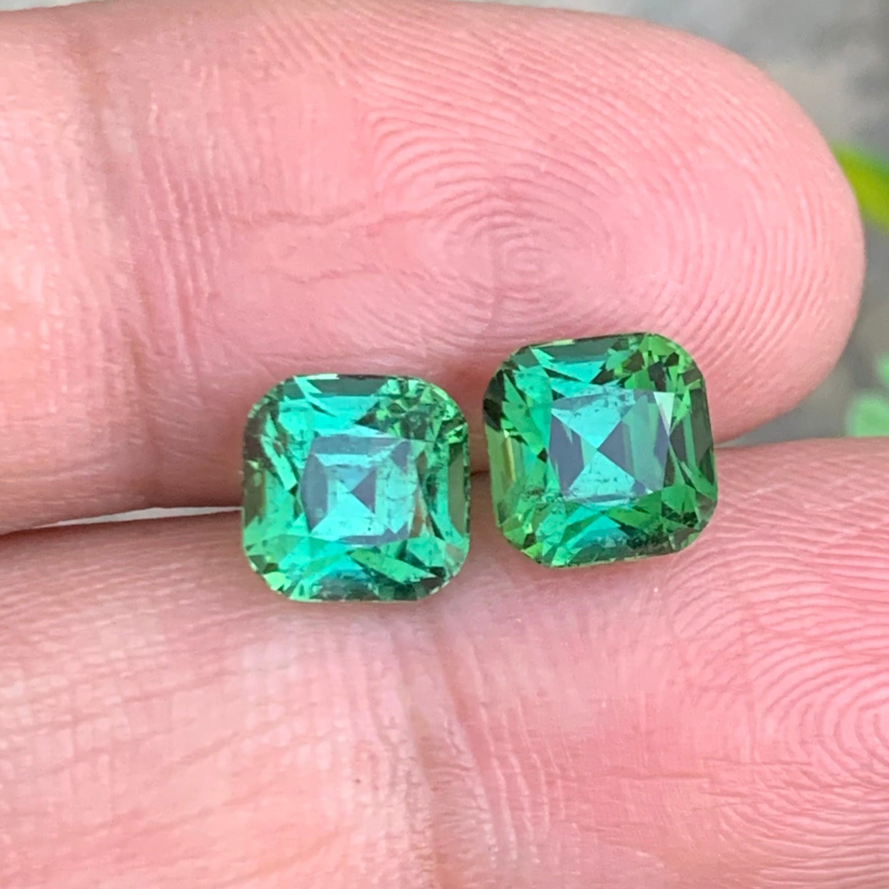 5.33 Carats Dazzling Bluish Green Tourmaline Pair, Cushion Cut – from Afghanistan