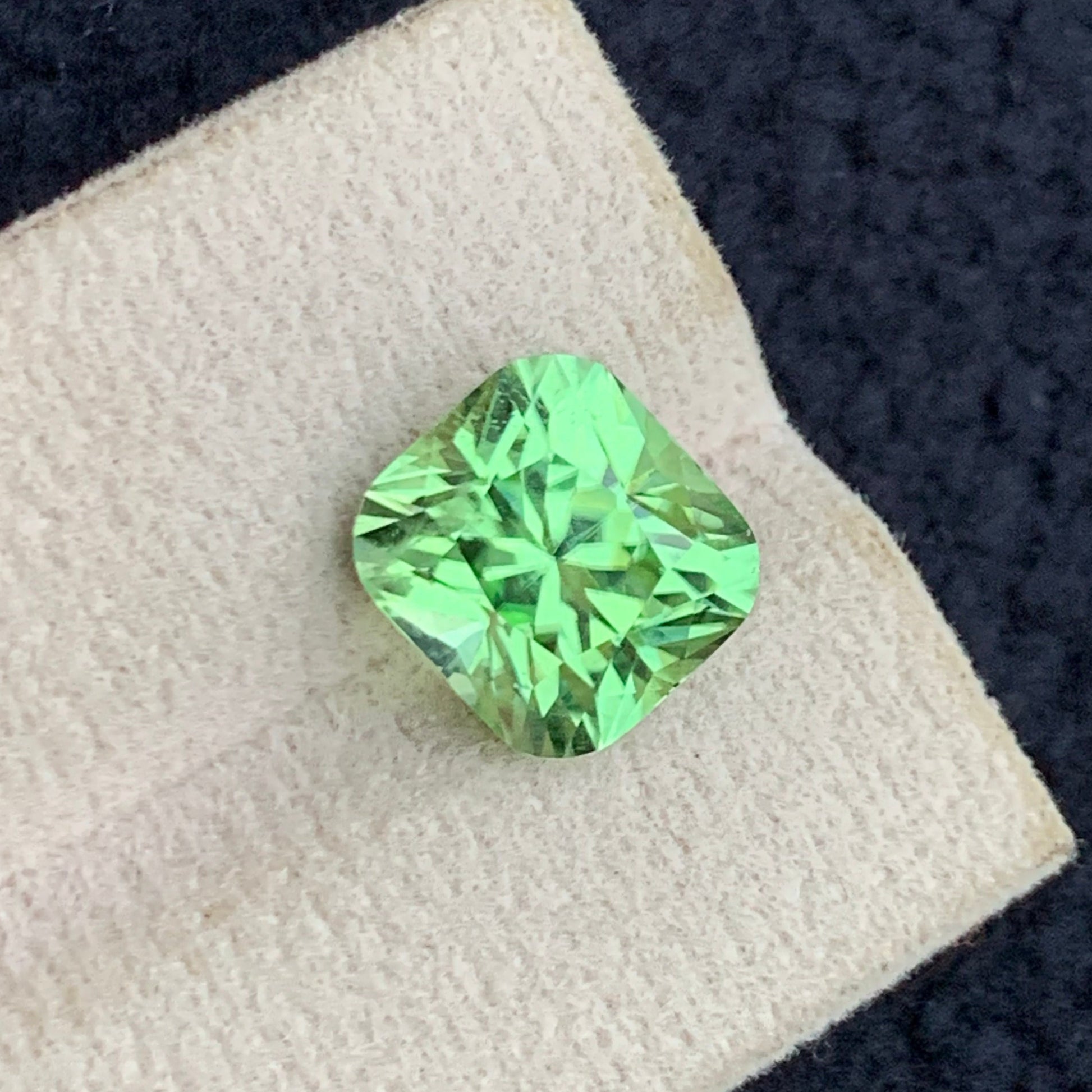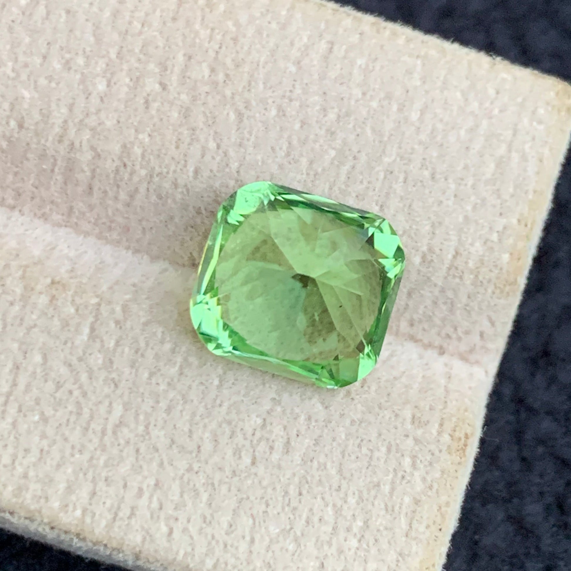 5.55 Carats Natural Apple Green Peridot Gemstone with Cushion Cut