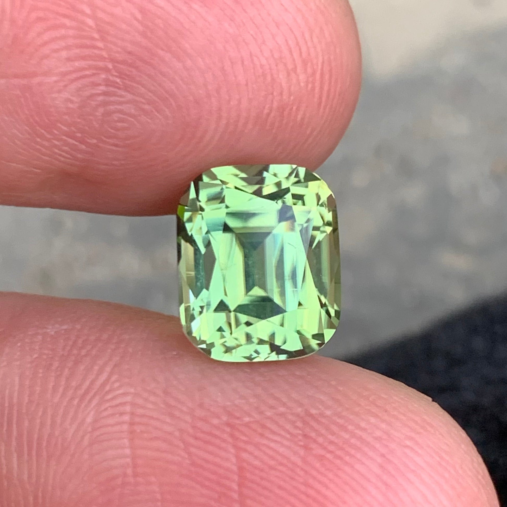 5.64 Carats Stunning Apple Green Tourmaline Gemstone with Charming Cushion Shape