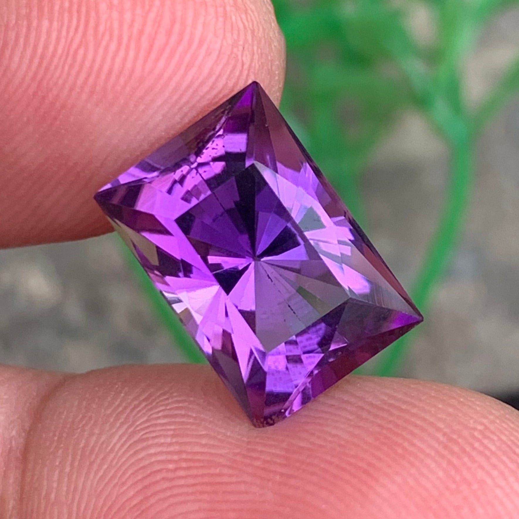 5.75 Carats Faceted Pink Purple Amethyst from Brazil with baguette Cut Gemstone