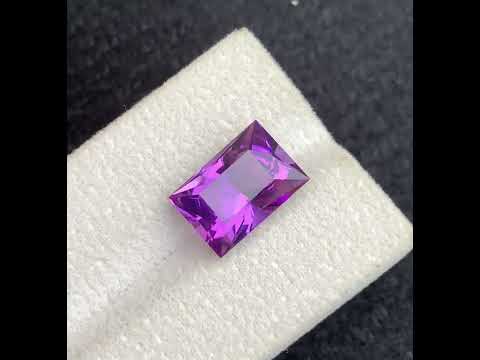 This 5.75-carat faceted amethyst from Brazil showcases a captivating pink-purple hue, expertly cut in a baguette shape. Its precise faceting enhances brilliance and color depth, making it an exceptional choice for fine jewelry. Ideal for collectors and designers seeking a unique gemstone with both elegance and vibrant character.