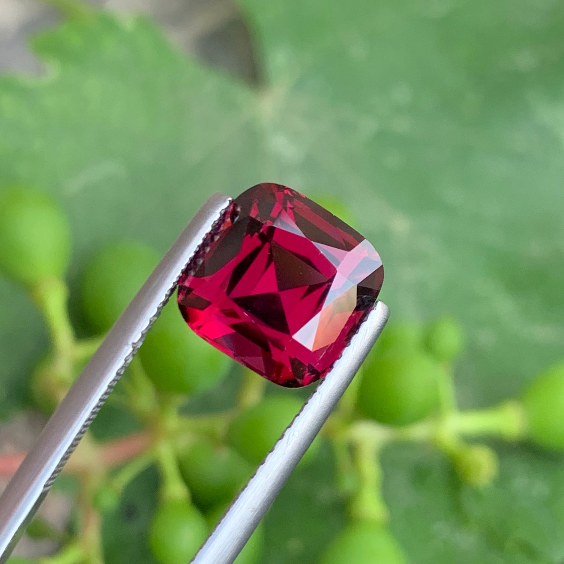 6.77 carat luxurious Pinkish Red Garnet, beautifully crafted in a classic cushion cut to enhance its natural brilliance and depth of color. Mined from the rich gemstone deposits of Tanzania, this stunning piece displays a vibrant pinkish-red hue that symbolizes passion, energy, and sophistication. Its expertly faceted cushion cut allows light to reflect effortlessly, producing a radiant sparkle and exceptional luster. With its fine clarity and eye-catching color saturation, this garnet is a perfect centerpiece for high-end jewelry designs such as rings, pendants, or bespoke creations.