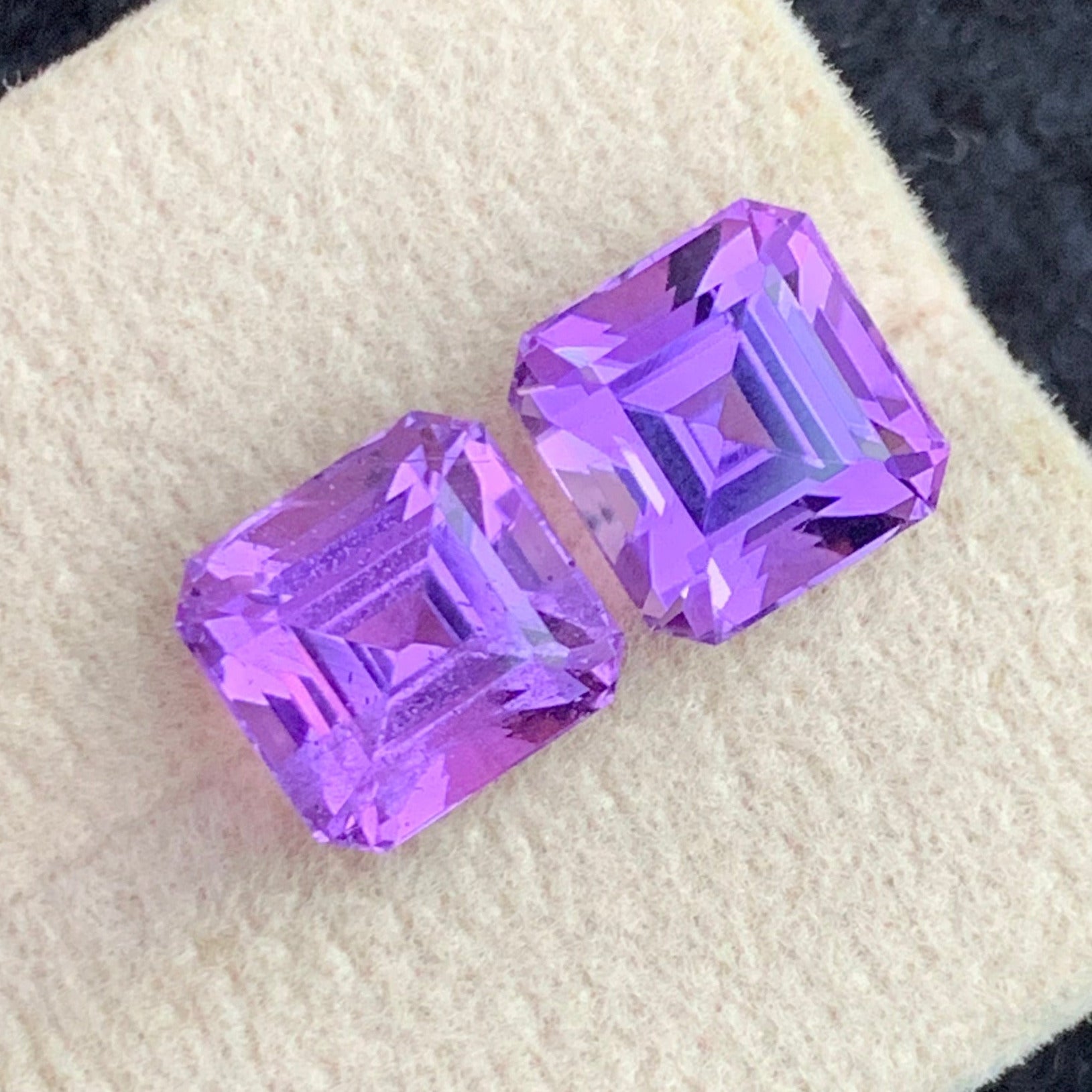 6.80 Carats Eye catching Natural Pink Purple Amethyst Pair, Asscher Cut – Amethyst for Earring