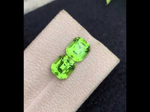 6.95 Carats Attractive Green Peridot Gemstone Pair with Cushion Cut, Green Peridot for Earrings