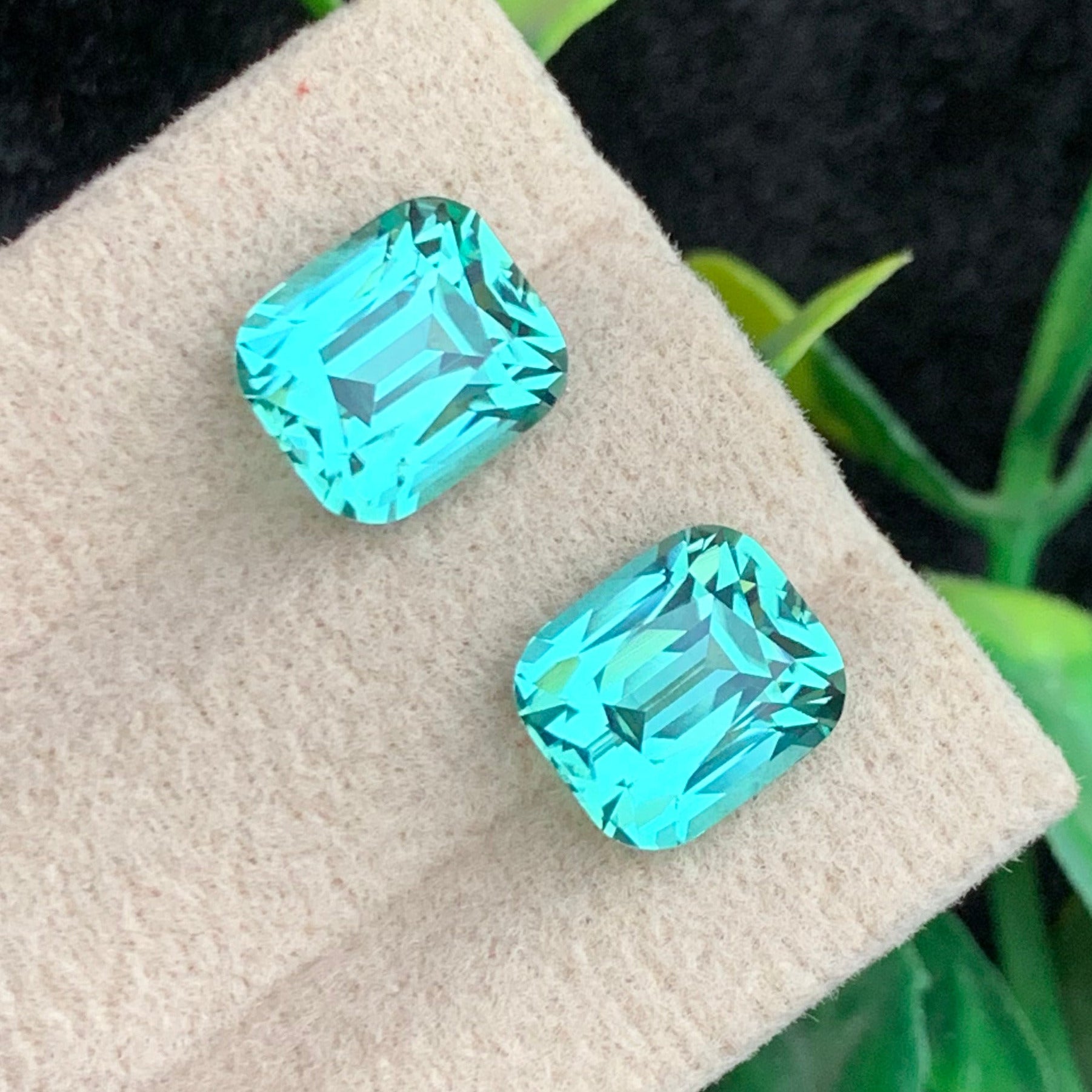 7.38 Carats Paraiba Like Color Tourmaline Pair with Cushion Shape | Gemstone for Earrings