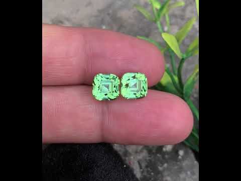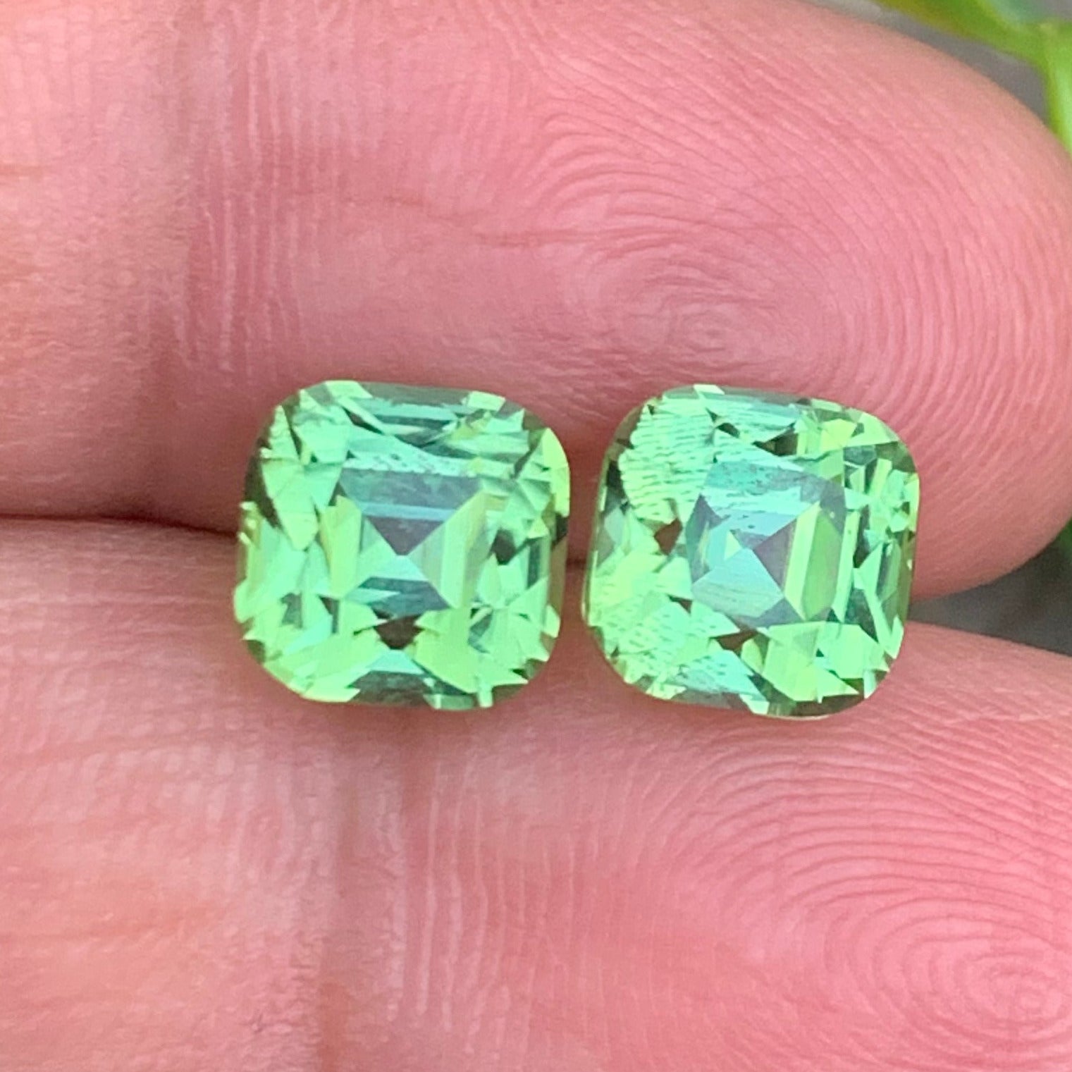 7.82 Carats Apple Green Tourmaline Pair – Cushion Cut | Afghanistan