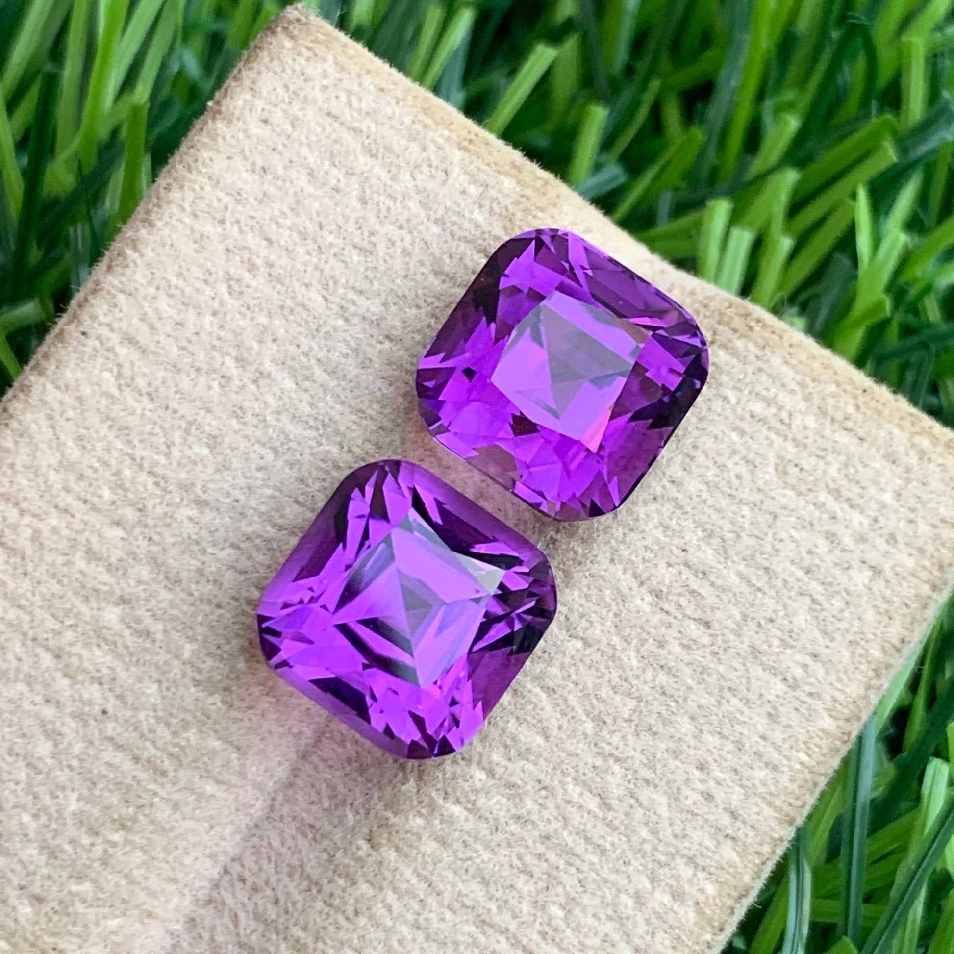 This exquisite amethyst pair showcases 8.34 carats of natural beauty, featuring a sophisticated pink-purple hue that captures light with remarkable brilliance. Each stone is expertly cut in a classic cushion shape, offering balanced proportions ideal for creating stunning earrings. The matched pair ensures symmetrical elegance, while the natural gemstone quality provides authentic character and depth. Perfect for jewelers seeking premium amethyst specimens or collectors valuing genuine, high-quality stones with exceptional color saturation and clarity.