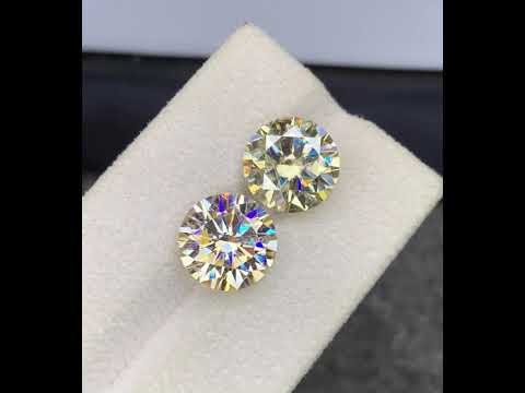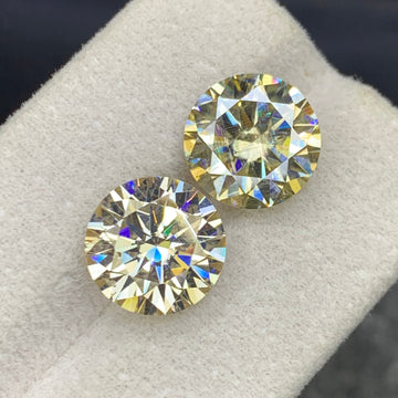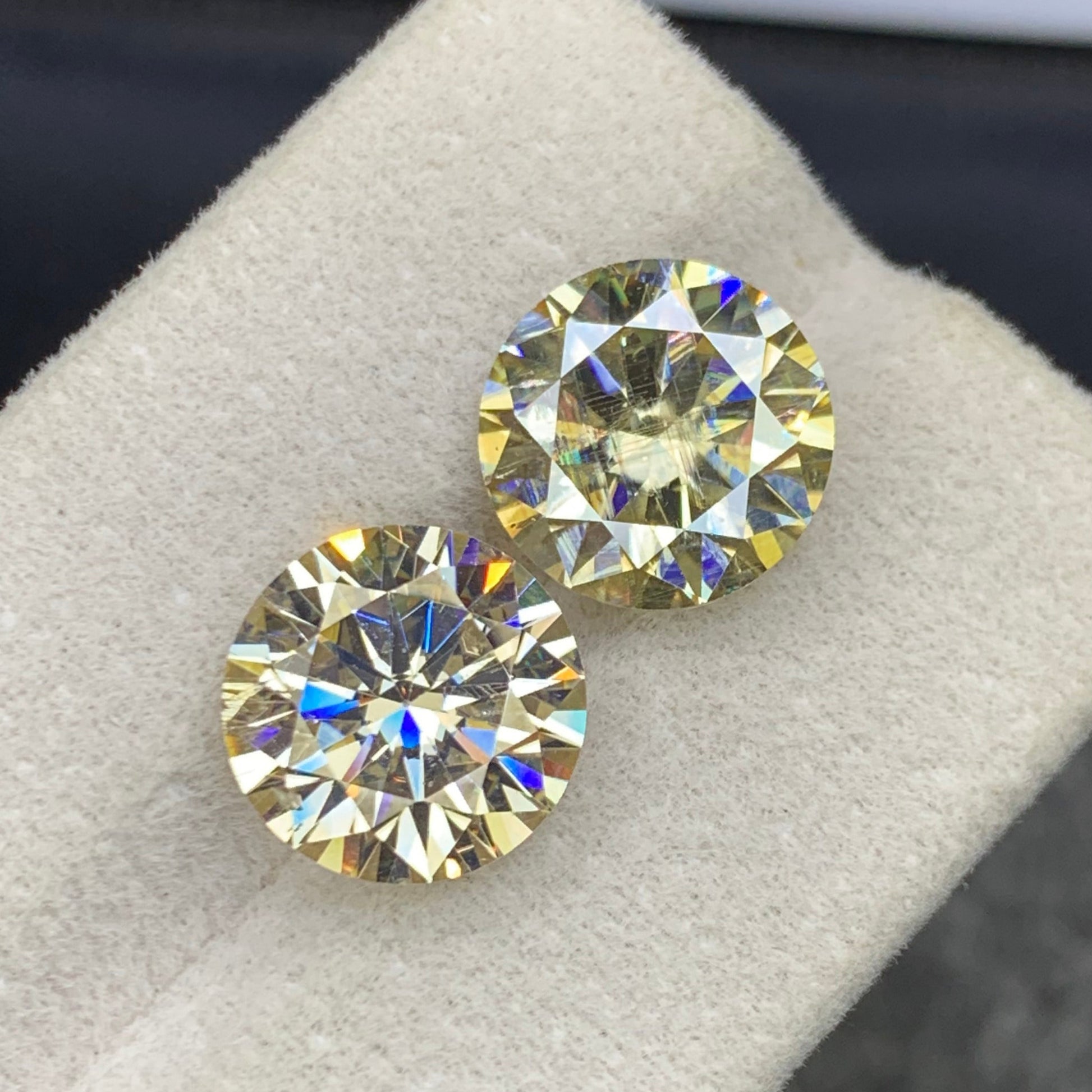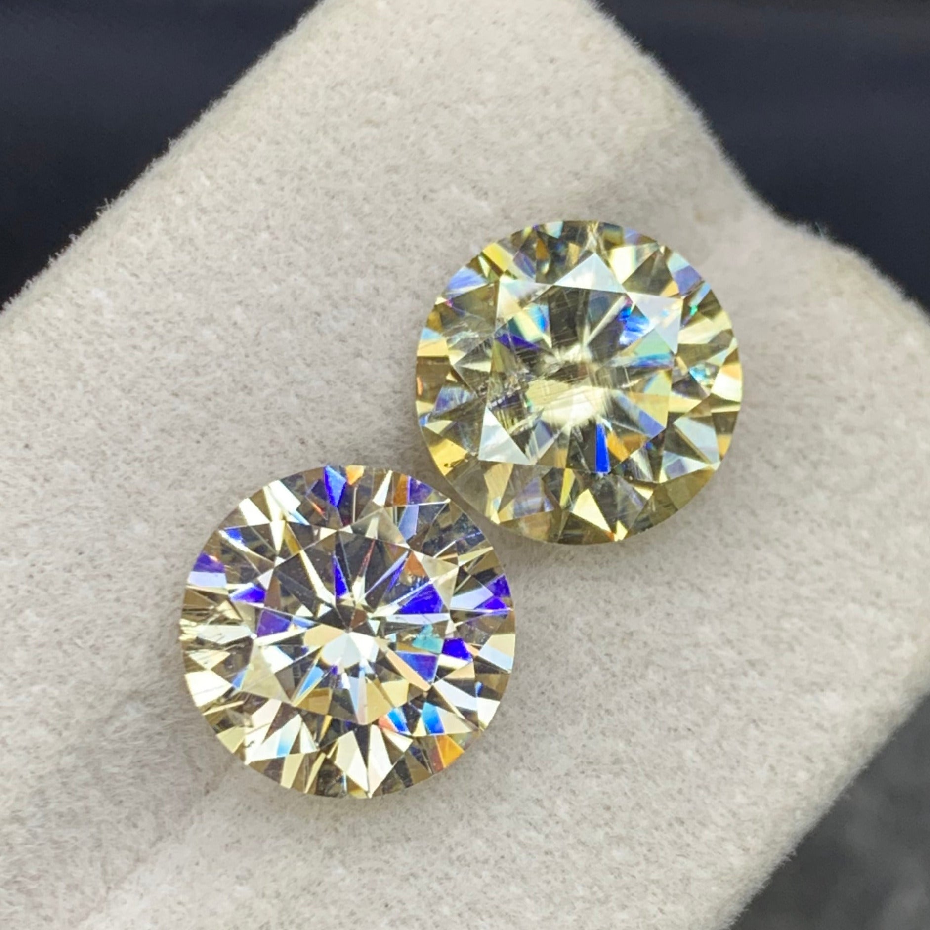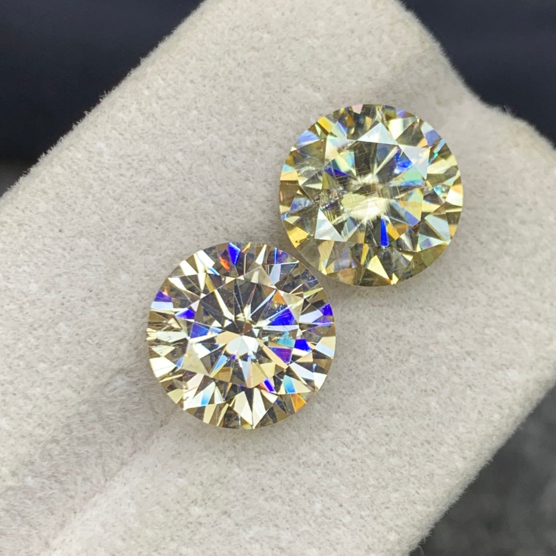 9.25 Carats Round Shape Light Golden Moissanite Pair – Moissanite Gemstone for Earrings