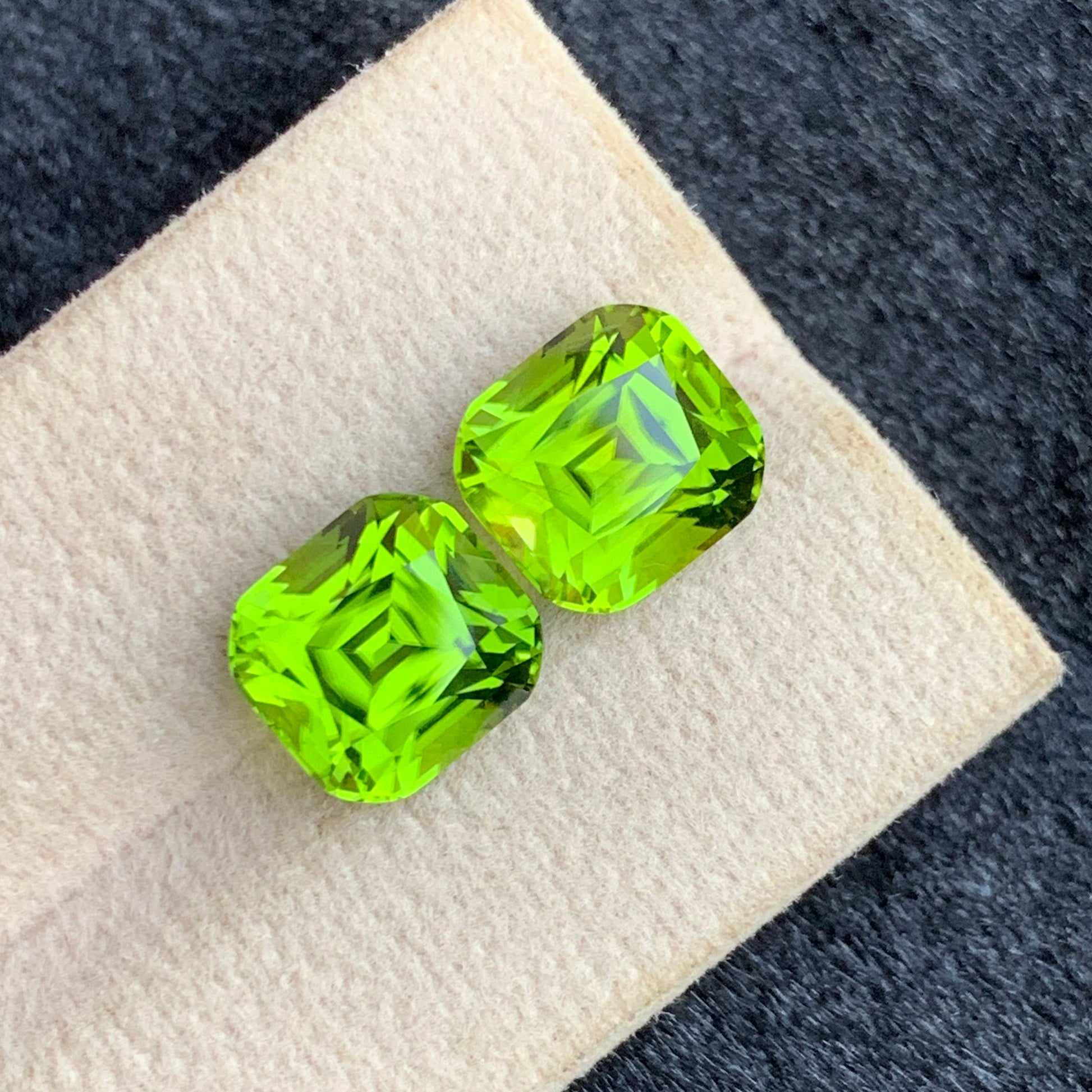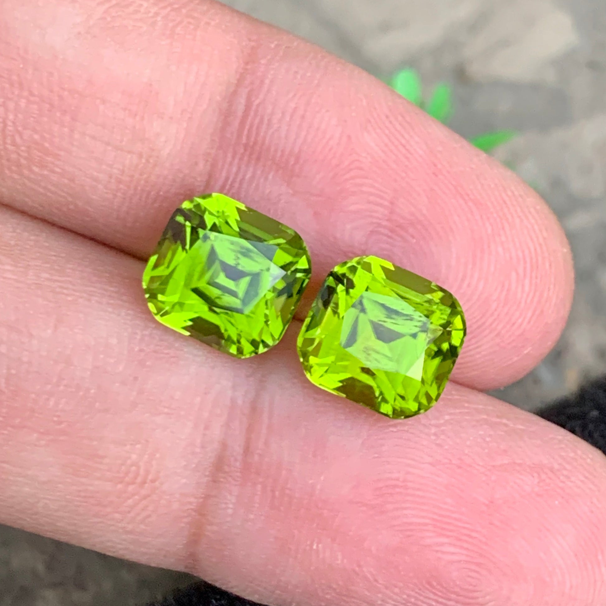9.95 Carats Natural Green Peridot Pair with Cushion Cut, Natural Peridot for Earrings