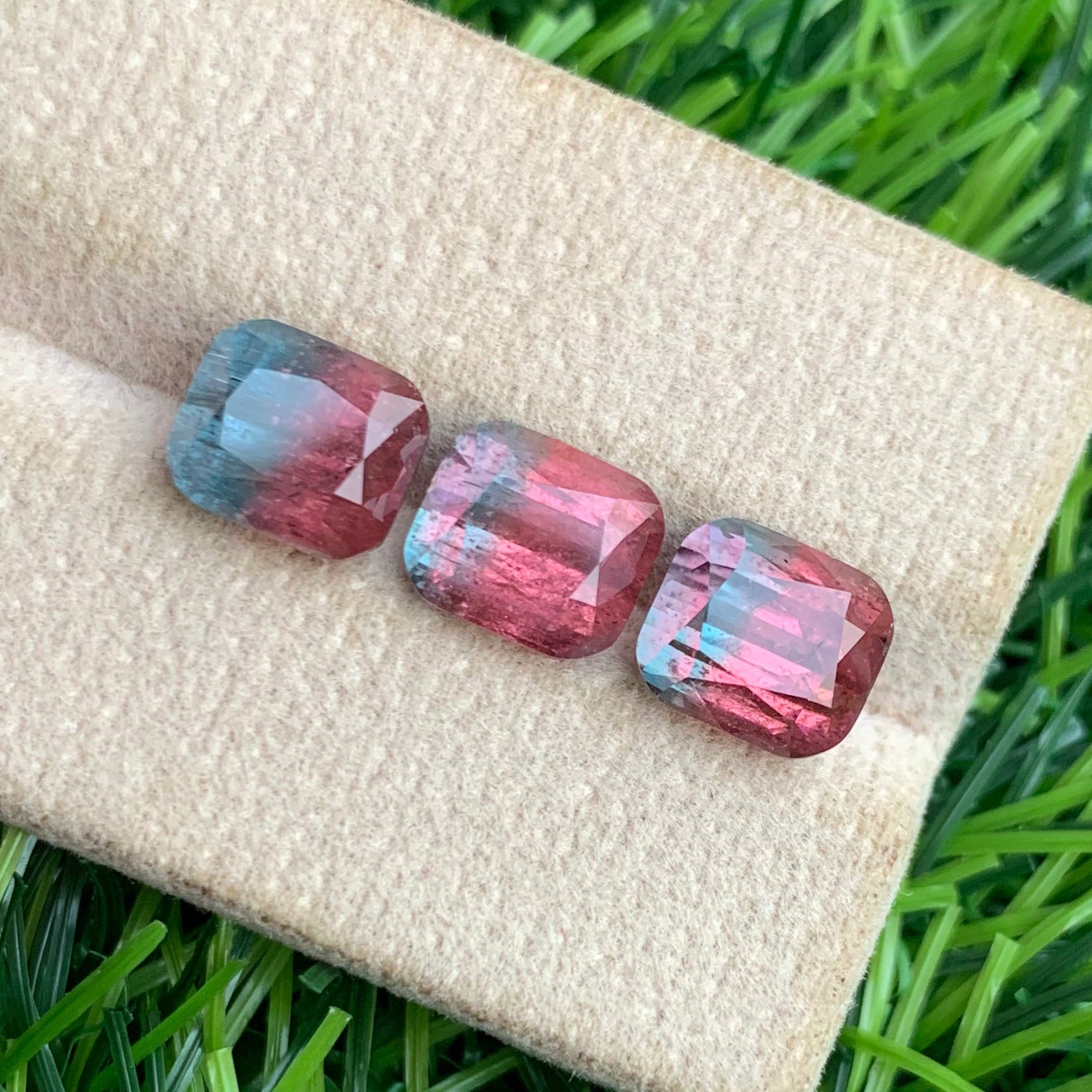 Attractive Bicolor Tourmaline Set – 8.73 Carats, Cushion Cut (Afghan Tourmaline Jewelry Set)